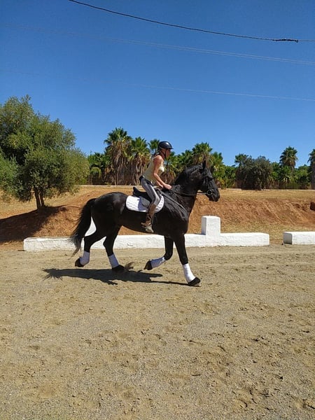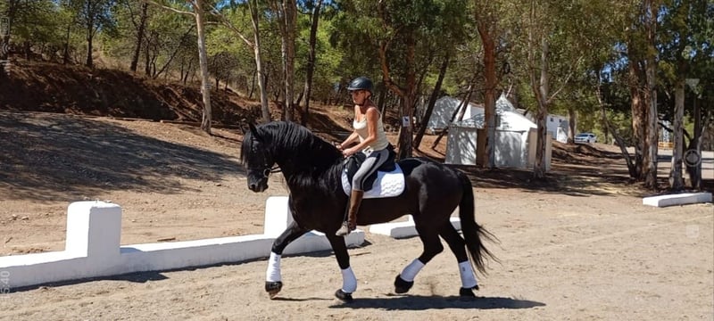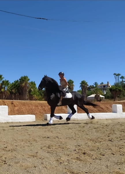Hermoso semental frisón de 12 años de edad para la venta. Tiene papeles KFPS, 1,70 m linea genética de ORLIK 308 alta escuela con participaciones en competiciones de morfología muy noble ha sido montado, y es fácil de manejar Papeles oficiales de Holanda. Montado en alta escuela para clases superiores de doma, increíblemente dulce y cariñoso,apto para cualquier jinete novato o experimentado. Es muy noble con otros caballos ,nada de modales como semental, no hay problema ni siquiera al lado de las yeguas. Apto para la mayoría de los jinetes. Este impresionante semental impresiona por su elegante apariencia y su talentoso potencial para la doma. Está bien entrenado y listo para seguir brillando con su nuevo dueño. We speak English, If you want to know more, do not hesitate to ask.