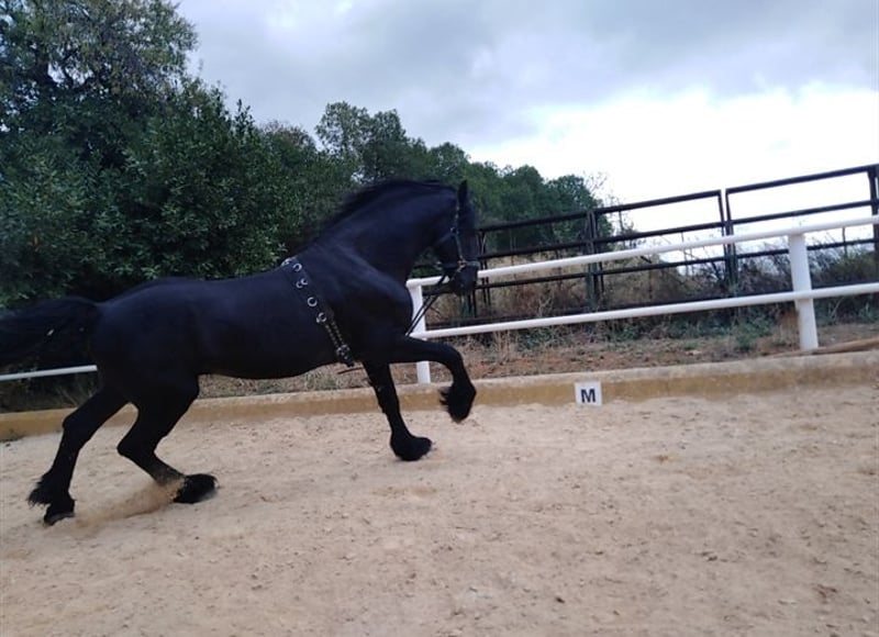 Beautiful 12 year old Friesian stallion for sale. He has KFPS papers, 1,70 m genetic line of ORLIK 308 high school with participations in morphology competitions very noble has been ridden, and is easy to handle. Official Dutch papers. Ridden in high school for higher dressage classes, incredibly sweet and affectionate, suitable for any novice or experienced rider. He is very noble with other horses, no manners as a stallion, no problem even next to the mares. Suitable for most riders. This impressive stallion impresses with his elegant appearance and his talented dressage potential. He is well trained and ready to continue to shine with his new owner.