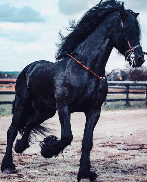Razor is the rare Frisian every rider dreams of: a breathtaking purebred Friesian who combines upper-level talent with a heart of gold. Upper-Level Talent: He is a true showman with extensive show experience, remaining calm and focused in busy environments. He is highly educated in his lateral work and boasts impressive high-level movements, including a powerful trot in place (Piaffe) and a rhythmic, lofty Passage. Whether you are looking for a competitive dressage partner or a stunning exhibition horse, his presence and suspension are second to none. Family-Safe Temperament: What truly sets Razor apart is his incredible brain. Despite his power, he is completely kid-friendly and safe for the entire family. He is as happy performing under the lights of a show arena as he is being groomed and handled by children at home. He is the ultimate "gentle giant" with a patient, forgiving nature.
