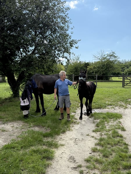 Vendo un joven semental Frisón, ¡perfecto para la doma y el deporte! Se ofrece un prometedor semental Frisón, nacido en 2025. Este elegante caballo negro destaca por su porte noble y su carácter amistoso. Con una altura de 1,48 m, ya está bien desarrollado y muestra un gran potencial para la competición en doma. Es de color negro azabache y crecerá bastante; su madre proviene de una línea deportiva y su padre es múltiple participante en los Juegos Olímpicos en doma. Su carácter equilibrado y su temperamento agradable hacen de él un compañero ideal para jinetes ambiciosos que buscan un potro confiable para el futuro. Para más información o si está interesado, no dude en contactarme.