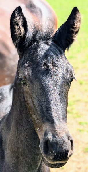 Umwerfend schönes Glanzrappfohlen sucht jetzt schon seinen Menschen. Er wurde am 12.07.25 geboren und ist bereits schon gut 1 m groß. Ein langbeiniger und sehr edler junger Mann,dem einmal die Welt zu Füßen liegen kann. Er glänzt wie poliert und ist eher der ruhigere Typ. Er ist einfach zum Verblieben schön. Seine Mutter ist unsere Trakehnerstute mit sehr nennenswerter Abstammung. Sein Vater ist unser gekörter und ultrabarocker Friesenhengst. Er bekommt einen Pass vom Zsse mit Abstammungsnachweis. Für die Besichtigung erheben wir 15€ ,welche bei Kauf selbstverständlich gegen gerechnet werden. Wem dieses zuckersüße Kerlchen gefällt,einfach melden . Termin zur Besichtigung findet sich zeitnah.