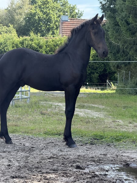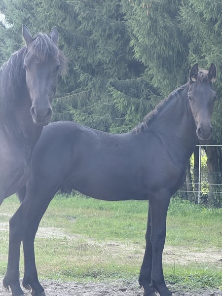 Zum Verkauf steht ein typvoller barock Friesen-Jährling, der mit seiner eleganten Ausstrahlung, seinem korrekten Gebäude und seinem freundlichen Wesen überzeugt. Er ist altersgerecht entwickelt, gut bemuskelt und zeigt sich mit harmonischen Bewegungen und schöner Präsenz. Er kennt das Fohlen-ABC und ist im täglichen Umgang brav: Er lässt sich halftern, führen, putzen und die Hufe geben. Er ist dabei neugierig, gelassen und sehr menschenbezogen, ohne aufdringlich zu sein. Ein ideales Nachwuchspferd für Liebhaber der Friesenrasse, die Wert auf Charakter, Erziehung und solide Grundlagen legen – ob für Freizeit, Ausbildung oder als Partner fürs Leben.