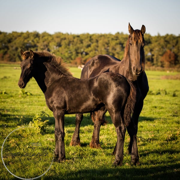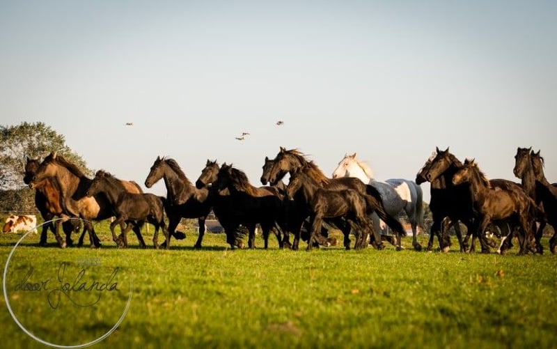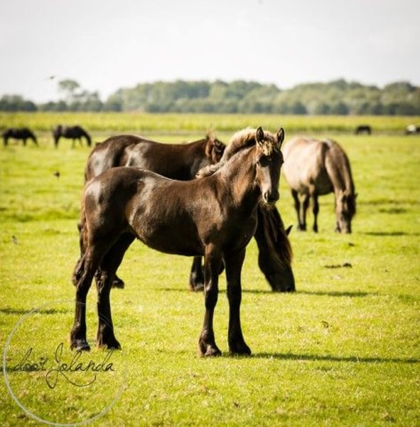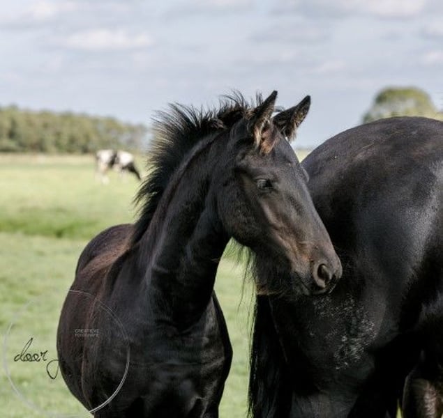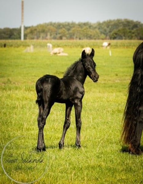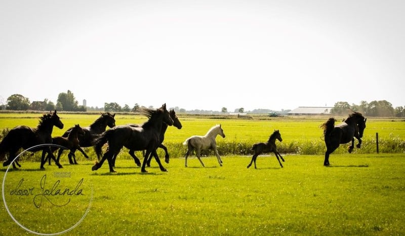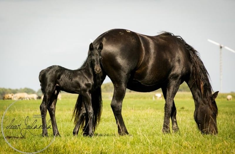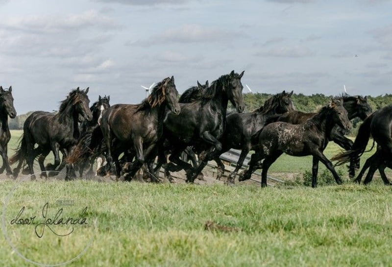 Are you looking for your dream horse? We are a Friesian and Baroque Pinto stud farm in 8851 RE Tzummarum, Netherlands. Every year you will find fantastic (over 40!) Friesian colts, Friesian fillies, baroque pinto foals, but also older Friesian mares and Friesian stallions and baroque pinto horses (feel free to take a look at our other advertisements). From species-appropriate husbandry, directly from the breeder. Our horses grow up very naturally in large herds and are therefore very well socialized. Most foals are born in May/June and are ready to wean from 6 months. Final stock mass between 1.55 -1.65m. The horses are microchipped with an equine passport, without KFPS paper, so that a Friesian is still affordable for everyone. Our horses know the ABC of herds, are still completely raw and not yet halter-pious. You are familiar with heavy traffic (tractor, shovel) and have not had any bad experiences. So you can train the horses as you like. We do not have trained horses. What else you will find with us: We have been breeding Friesian, Baroque Pintos and Friesian mix horses for almost 40 years. From our stud farm in the Netherlands we have many beautiful horses (0-15 years old) for sale. Our horses grow up very naturally in large herds and are therefore very well socialized. Here they live a dream horse life: in spring and summer on large meadows. In winter in large group stables. Our stallions each have their own herd of mares and are allowed to run there all year round. Pure nature and something quite special. A good character, cool in the head, strong, healthy and sweet are important requirements for us when breeding. Horse and human find each other with us and we are happy if our horse finds a nice place with you. Are you seriously interested?... We are looking forward to it! Then please call Roeline or write a WhatsApp: 49(0)15759302514 or 31 (0)612414444. We speak German, Dutch and English. Greetings from beautiful Tzummarum, Friesland, Netherlands