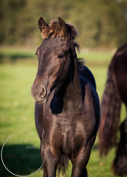 ¿Estás buscando el caballo de tus sueños? Somos una yeguada frisona y barroca de Pinto en 8851 RE Tzummarum, Países Bajos. Cada año encontrarás fantásticos (¡más de 40!) Potros frisones, potrancas frisonas, potros pintos barrocos, pero también yeguas frisonas más viejas y sementales frisones y caballos pinto barrocos (no dude en echar un vistazo a nuestros otros anuncios). De la cría apropiada para la especie, directamente del criador. Nuestros caballos crecen de forma muy natural en grandes manadas y, por lo tanto, están muy bien socializados. La mayoría de los potros nacen en mayo/junio y están listos para el destete a partir de los 6 meses. Masa final del stock entre 1,55 -1,65m. Los caballos tienen un microchip con un pasaporte equino, sin papel KFPS, para que un frisón siga siendo asequible para todos. Nuestros caballos conocen el ABC de las manadas, todavía están completamente crudos y aún no son cabestros. Está familiarizado con el tráfico pesado (tractor, pala) y no ha tenido ninguna mala experiencia. Así que puedes entrenar a los caballos como quieras. No tenemos caballos entrenados. Qué más encontrará con nosotros: Llevamos casi 40 años criando caballos frisones, pintos barrocos y mezclas frisonas. De nuestra yeguada en los Países Bajos tenemos muchos caballos hermosos (de 0 a 15 años) a la venta. Nuestros caballos crecen de forma muy natural en grandes manadas y, por lo tanto, están muy bien socializados. Aquí viven una vida de caballo de ensueño: en primavera y verano en grandes praderas. En invierno en establos de grupos grandes. Cada uno de nuestros sementales tiene su propio rebaño de yeguas y se les permite correr allí durante todo el año. Naturaleza pura y algo muy especial. Un buen carácter, fresco de cabeza, fuerte, sano y dulce son requisitos importantes para nosotros a la hora de criar. El caballo y el humano se encuentran con nosotros y estamos felices si nuestro caballo encuentra un lugar agradable contigo. ¿Te interesa seriamente?... ¡Estamos deseando que llegue! Entonces llama a Roeline o escribe un WhatsApp: 49(0)15759302514 o 31 (0)612414444. Hablamos alemán, holandés e inglés. Saludos desde la hermosa Tzummarum, Frisia, Países Bajos