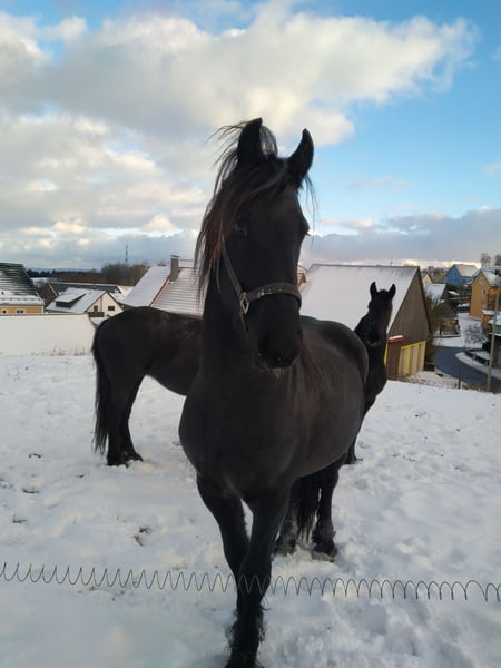 Wir verkaufen unseren 3jährigen Friesenhengst: "Xaver vom Haberlandhof". Seit einem Jahr wird er zweispännig gefahren.