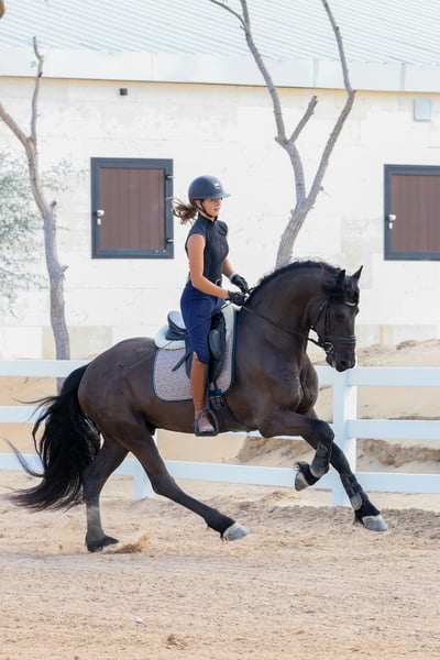 Teade Joh is an outstanding young Friesian stallion from the renowned Jehannes 484 line, and he is exactly the kind of horse that makes true Friesian lovers stop and look twice. He combines the classic Friesian presence with a modern, sport-oriented way of going and an exceptionally rideable character. What makes Teade Joh truly special is his temperament. He has a warmblood-like mindset: willing, cooperative, intelligent, and eager to work. He is not sharp or difficult, but instead thinks with his rider and enjoys his training. This makes him suitable not only for experienced riders, but also for riders who want a Friesian that feels familiar and uncomplicated under saddle. Under saddle, Teade Joh stands out with his expression and movement. He has a powerful yet supple trot, good use of the hind leg, and a natural ability to carry himself. His movements are expressive without being tense, showing balance, elasticity, and natural rhythm. He gives the feeling of a horse that wants to grow with his rider and develop further in the sport. Pedigree Jehannes 484 x Jisse His sire Jehannes 484 is known for producing Friesians with excellent rideability, strong hind legs, and sport aptitude, and Teade Joh clearly reflects these qualities. This pedigree is highly regarded for producing horses that are suitable for higher-level work while maintaining a fantastic character. Key Highlights: - Young Friesian stallion - Exceptional character with warmblood-type rideability - Expressive, elastic movements - Powerful trot with good hind-leg engagement - Willing, intelligent, and eager to work - Not sharp, thinks with the rider - Excellent sport potential - Strong and respected pedigree Teade Joh is not just a beautiful Friesian — he is a stallion with the brain, body, and movement to be developed seriously for sport or to become a top-quality riding horse for someone who wants more than just looks. 📍 Available now 🚨 Serious enquiries only A rare opportunity to acquire a Friesian stallion with true sport qualities and an exceptional mind.