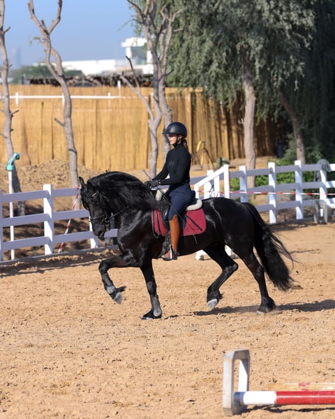 Tinus is a young Friesian stallion with an exceptionally striking appearance and a true baroque type that immediately captures attention. He is a stallion with substance, presence, and charisma, exactly what Friesian enthusiasts are looking for when they want a horse that stands out both in the stable and in the arena. He combines the classic Friesian look—deep black coat, strong frame, expressive head, and impressive mane—with a confident and masculine appearance. Tinus is a stallion that makes an impression without trying: bold, proud, and full of presence. Pedigree Jehannes x Ulbrân This pedigree brings together strong Friesian bloodlines, known for producing horses with power, expression, and a solid foundation. Tinus clearly reflects these qualities in his build and overall type, making him an interesting prospect for someone who appreciates a traditional Friesian with strength and character. Highlights - Young Friesian stallion - Very striking and eye-catching appearance - Strong baroque type - Powerful frame and correct conformation - Deep black color with expressive features - Masculine, proud presence - Ideal for lovers of the classic Friesian Tinus is a stallion for those who value authentic Friesian type — baroque, powerful, and impressive. Whether for future riding, breeding prospects, or simply owning a horse with undeniable presence, Tinus is a true head-turner. 📍 Available now 🔒 Serious enquiries only A rare opportunity to acquire a young Friesian stallion with real baroque strength and unmistakable presence.