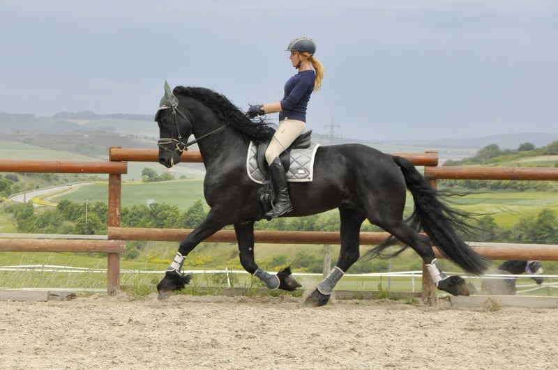 A very typy and correctly built stallion with above-average movement and incredible presence. He has a thick, long mane and tail and is well-ridden and driven for his age. Due to his good rideability and willingness to learn, he already performs the extended trot outside. A horse with potential for higher-level dressage! He has an impressive uphill canter — a Friesian that is extremely fun to ride! He also participated in the stallion performance test. He has an excellent character and a fantastic work attitude. He is simply a pleasure to handle, whether in daily interaction or when riding and driving. A truly special horse — an all-rounder through and through. Please contact us exclusively by phone.