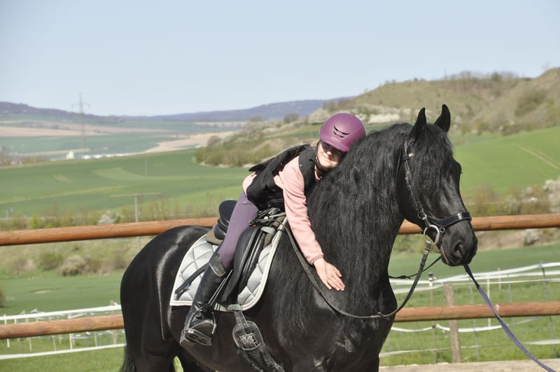Ein sehr lieber Friese NL mit einem tollen Charakter! Er hat ein gutes Exterieur und eine sehr lange Mähne. Auch wenn er Hengst ist, hat er kein Hengstverhalten. Er ist eher wie ein Wallach, was sehr angenehm ist, auch in fremder Umgebung. Er ist in den 3 GGA geritten, mindestens auf A-Niveau, wobei er auch den Außengalopp läuft. Er hat einen normalen Fleiß, nicht zu fleißig aber auch nicht zu faul. Er kennt ausserdem auch das Gelände und den Straßenverkehr. Ausritte in der Gruppe oder alleine meistert er gut. Er ist auch 1 / 2 / 4spännig gefahren. Anfragen bitte ausschließlich telefonisch.