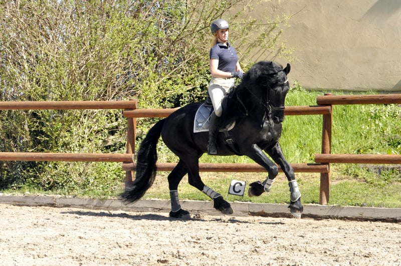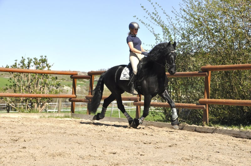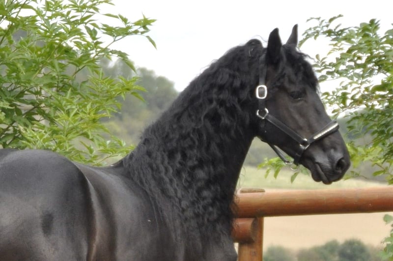 Un Friesian muy dulce de los Países Bajos con un carácter excepcional. Tiene una buena conformación y una melena muy larga. Aunque es semental, no muestra comportamientos típicos de semental. Se comporta más como un potro, lo cual resulta muy agradable, incluso en entornos desconocidos. Ha sido montado en la modalidad de 3 GGA, al menos en nivel A, y también realiza galopes en el exterior. Tiene un temperamento equilibrado, ni demasiado enérgico ni perezoso. Además, conoce el terreno y el tráfico vial. Realiza paseos en grupo o solo sin problemas. También está entrenado para conducir en sulky de 1, 2 y 4 caballos. Por favor, las consultas solo por teléfono.