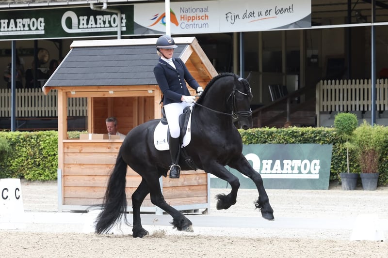 Jensen van the Terpen – Elite 7-Year-Old Friesian Star Stallion. An exceptional Friesian stallion combining presence, power, and refined elegance at the highest level. Jensen represents the rare modern Friesian: expressive, athletic, and extremely reliable in temperament. A true show-stopper with abundant feathering, a powerful front, and three outstanding, expressive gaits with natural balance and suspension. He performs effortlessly and loves attention, making him a standout in any international arena. Highlights: • Dressage up to Z level • Successfully presented at the Royal Friesian Stallion Show, Leeuwarden • Multiple competition wins and placements • Experience in harness sport • Approved stallion selection trajectory Health & quality: • Fully clinically and radiographically approved • Fertility tested (good semen quality) • Ster stallion Pedigree: Out of Kroon mare Mona Lisa van the Terpen, descending from the proven maternal line of Tjalbert 460. A rare opportunity for the serious international buyer seeking a Friesian stallion with both performance ability and elite presence. Available exclusively to a high-end 5★ home / professional sport or breeding program.