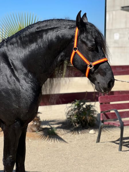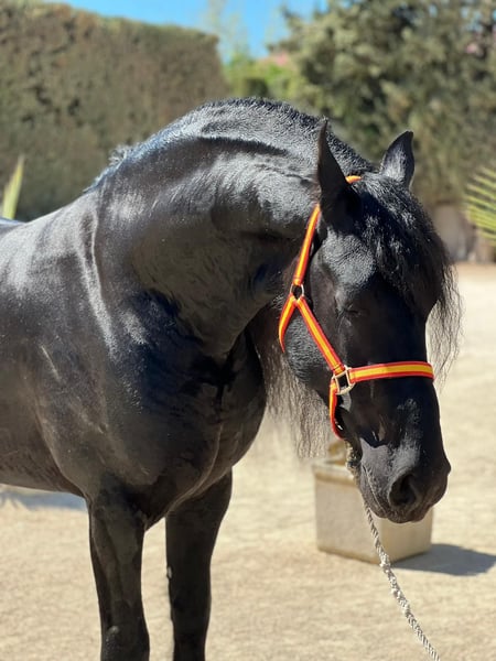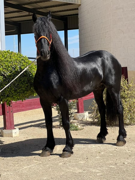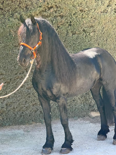 Z przyjemnością prezentujemy na naszej stronie tego spektakularnego konia fryzyjskiego, którego piękno i wygląd nie pozostawia nikogo obojętnym. Ta 7-letnia piękność jest wyszkolona w szkole średniej i z łatwością wykonuje piaffe, pasaż, chód hiszpański i posadę w ręku lub pod jeźdźcem. Jest bardzo łatwy i przyjemny w jeździe, był na feriach i romeriach i jest przyzwyczajony do wszystkiego, bardzo szlachetny.