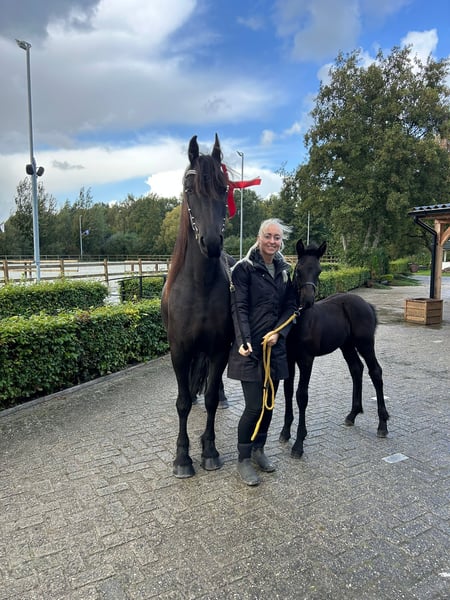 Douglas del mese di GD Valutazione 514 sport AAA X Alwin 469 sport pref AAA Nato il 4-8-2025 Puledro stallone di lusso, leggero e agile, talento sportivo per il futuro! Douglas è un puledro amichevole, che il 4 ottobre ha ricevuto una meritata seconda premiazione a Nunspeet. È stato detto che si tratta di un puledro di lusso, leggero e agile, con una testa nobile. La sua madre, a causa di un incidente da puledra, non è in allenamento, ma ha una schiena forte di natura e un carattere gentile e lavoratore. (L'ultima foto è della sua madre). Da febbraio Douglas potrà lasciare la madre, ma può anche rimanere fino all'inizio della stagione di pascolo.