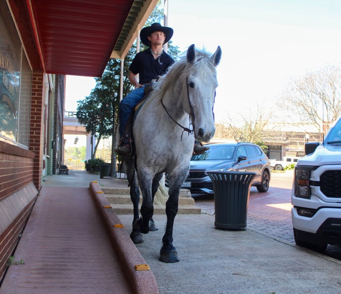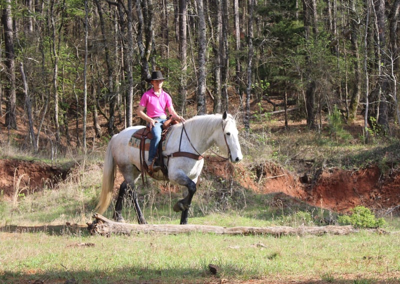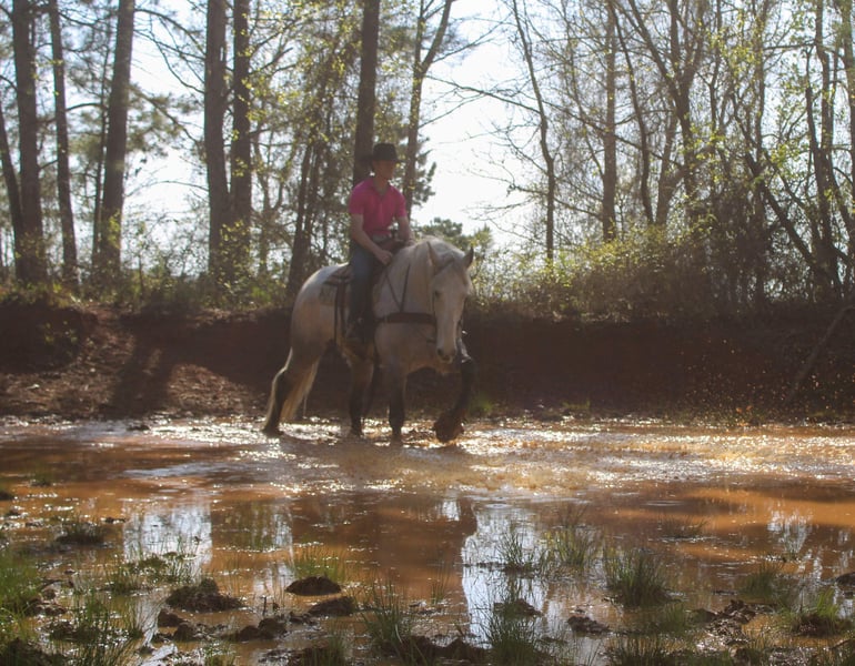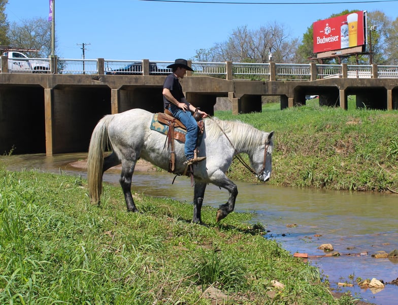 ⚜️𝓽𝓱𝓮 𝐆𝐎𝐋𝐃 𝓢𝓮𝓵𝓮𝓬𝓽⚜️ Happening now thru MONDAY | MARCH 23rd - Available EXCLUSIVELY on HorseBid's website! For more details and to register visit: www.Horsebid.com CONSIGNOR CONTACT: TR Livestock 605-370-4644 LOCATION: Rusk TX BREED: Friesian/Percheron cross REGISTERED: No COLOR: Gray HEIGHT: 16.2 AGE: 10 GENDER: Gelding Storm is a 10 year old gray draft cross (1/2 Percheron — 1/2 Friesian) gelding standing 16.2 hands tall. If you’re looking for a talented and steady crossbred, that is smart and always aims to please here he is! Storm has a lot of ability in the arena , he has smooth transitions and is good both inside and out! Storm is great on the trails, goes through water, different terrain and over obstacles. He has been used around cattle for being ranch work such as gathering, penning and even sorting! He will ride out alone or in a group and even has been rode in town! He stands tied, loads, bathes. He’s easy going and an easy keeper! Storm is a very unique cross with the large build and size of a Percheron and also the mind and beautiful movement of a Friesian making him a super cool cross to take to the show pen in the dressage or jumping! Or continue to use him on the ranch and the trails! If you’re looking for gentle as well as athletic ability in a draft cross that is easy to get along with here he is! Call or text TR Livestock 605-370-4644 (Rachel) for more info! Located in Rusk TX, nationwide shipping available!