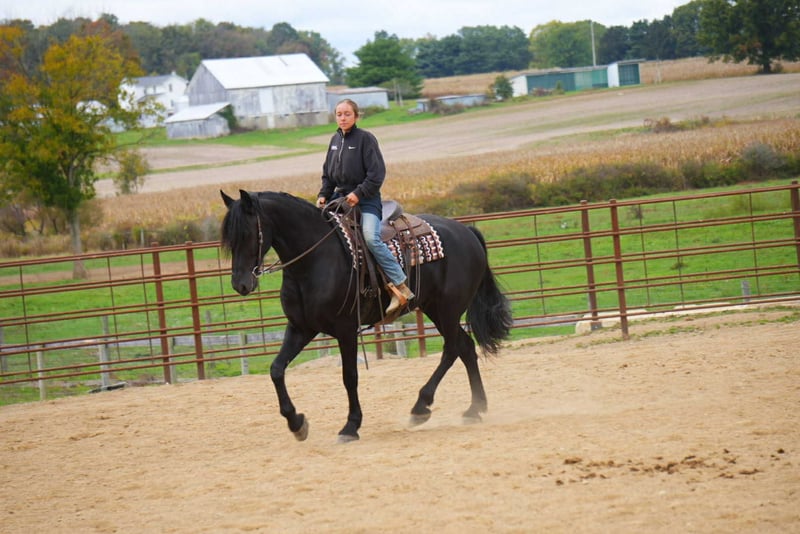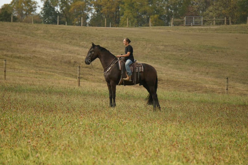 ONLINE AUCTION Place your bids at www.PlatinumEquineAuction.com Starting Bid $3500 Auction ends November 23rd, 2025 Need a new saddle? Check out White Rock Saddles on our website or Facebook Rizzo Is a total dream horse that will get heads turning no matter where you take him. He is a 16.3 2015 Friesian Sporthorse (Friesian/Percheron/Morgan) gelding. He rides English and Western.. Rizz rides great on the trails as well as the arena.. We ride great by himself as well as with a group.. Rizzo has no funny business and enjoys having a job and is extremely willing. He has a solid W/T/C both directions. He has a ground covering stride and pretty movement. strives to please and has work ethic. He is schooling First/Second level. Scoring First level tests in the 70’s. Jumping 3ft courses with changes, with plenty of scope. He has no buck rear or kick. He loves to trail ride and crosses all obstacles. He had been Fox hunted frequently and hunted first and second with no issues. On the trail, Rizz will happily go in the front or back of the pack. This brave boy is the first one into the water, be it crossing the stream, or going for a swim in the lake. He’s good in a group with horses riding up close behind him and doesn’t get upset. In the barn, Rizz has no bad stall habits He picks up all four feet and is good for the farrier. He stands to groom, clipped and saddled. He never causes problems in the pasture and gets along with everyone. He is a gentleman no matter the situation I trust him to take care of any level rider. Has been lightly used in lesson program and is my guest/friend/family horse for any trail or outing with inexperienced riders. Located in Fresno, Ohio. Call or text Mark with MW Equine 330-365-0233 ONLINE AUCTION Place your bids at www.PlatinumEquineAuction.com Starting Bid $3500 Auction ends November 23rd, 2025 Need a new saddle? Check out White Rock Saddles on our website or Facebook