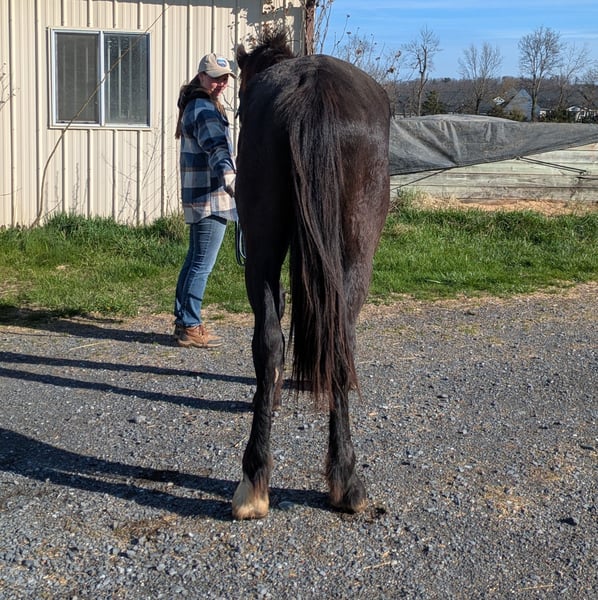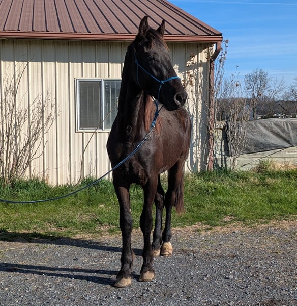 Introducing Sir Dunkin for your consideration!👀🏡 Bridgewater VA Coming 2 year old, ~16hh, Friesian cross gelding. UTD on vaccines and has a current coggins. Dunkin was rescued 2 months ago and has been in training for 1 month now. He has come a long way in his training and has most of the basics down. He is turning out to be a very cool guy and would be a great project for an experienced rider working with a trainer. He is very sweet, intelligent, and handsome!🤩 He thinks everything through and even though he has some firm boundaries, I have yet to find something that he refuses to do. With time, patience and once you have his trust he is willing to try just about anything. He would make a ✨great dressage prospect and is super athletic! He has lovely movements with lots of suspension and flash.✨ While he is safe to handle, he does need an experienced handler due to the fact that he is young and green. He needs someone who knows what they are doing when it comes to youngsters and someone who knows when to push and when to take the pressure off. He is the sweetest boy and always tries his best. You can see his entire journey on my social media Journey of a Hart Horse. He is one that I wish I could keep in my personal herd!! Message me for more information/videos.