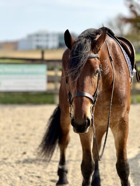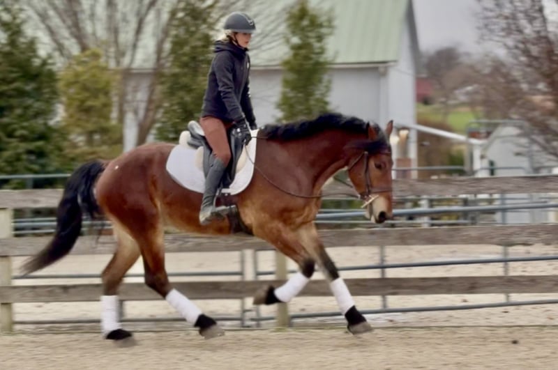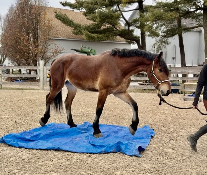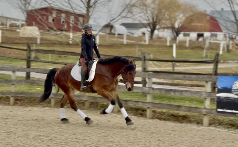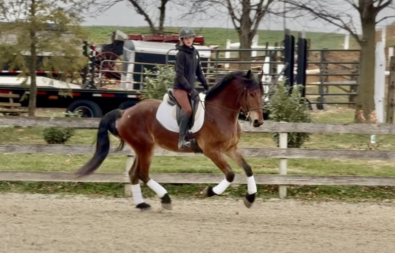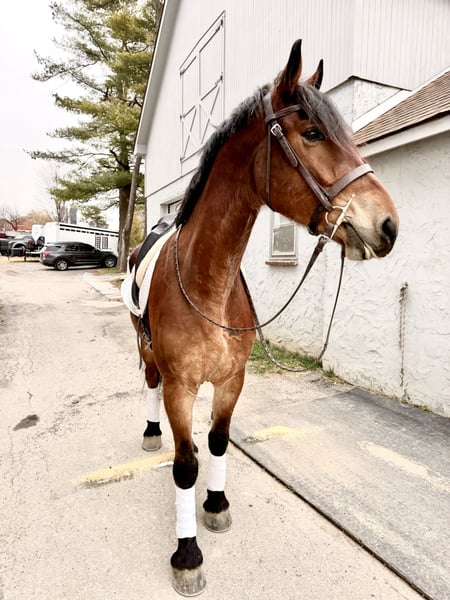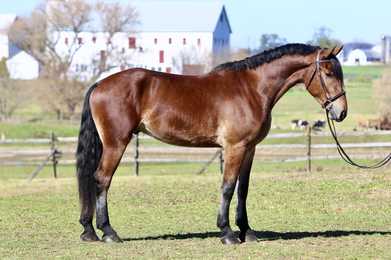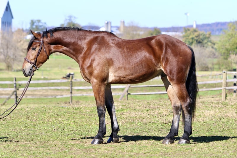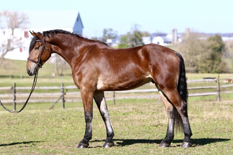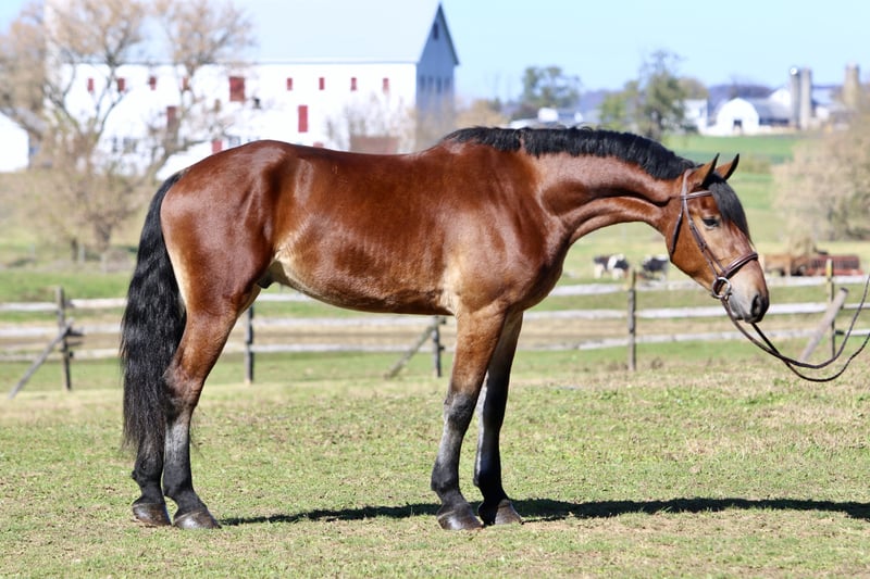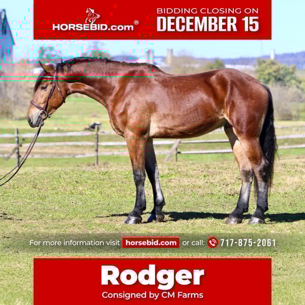 🎄𝐓𝐇𝐄 𝑯𝒐𝒍𝒊𝒅𝒂𝒚 𝐂𝐋𝐀𝐒𝐒𝐈𝐂🎄 Happening now thru MONDAY | DECEMBER 15th - Available EXCLUSIVELY on HorseBid's website! For more details and to register visit: www.Horsebid.com CONSIGNOR CONTACT: CM Farms 717-875-2061 LOCATION: Gap, PA BREED: Friesian/Belgian REGISTERED: No COLOR: Bay HEIGHT: 16.2-3 AGE: 3 GENDER: Gelding How drop-dead gorgeous is this guy!? 🤩 Rodger is a coming 4-year-old Friesian/Belgian cross gelding. Already standing around 16.2–3hh, this boy has legs for days (and is still growing!). Rodger has acquired quite a few nicknames (as all the favorites do) including Rodge, Rodgie, Rodgie Poo, Baby Rodge, Rodgie Bear, and any other play on Rodge you can think of. 😆 He’s been an absolute joy to have in our barn—so willing to please and incredibly athletic. Although we normally offer the Cadillacs of the horse world, Rodger is definitely more of the Porsche—the sports car of the draft cross world! He’s a lighter build with a good work ethic, and he is a light, responsive ride! He’s probably not going to be for your grandma or husband, but if you want forward-thinking while still being safe and sensible—don’t pass up this guy! The options are endless with him. Rodger has been a blast to bring along under saddle. He’s a horse with incredible self-carriage and balance for his young age. He’s an overachiever and so intelligent, so he will require a vigilant rider to keep his brain and body occupied. Rodge is the type of horse that will give you exactly what you put in—the type that will make you a better rider by making you more self-aware—and the type that always answers with yes. He pays attention to your every move; whether it be posting speed, a light half-halt, a release—he clocks it all. His favorite speed is fast, though he is easily adjustable and will do a lovely slow, collected sitting trot if asked. His canter is big and floaty and will make you feel on top of the world! He has easy transitions and ground-covering movement. He responds to your seat and voice for a whoa, and already leg-yields better than horses twice his age! He loves a quiet, soft rider and will not respond well to a heavy hand or rough person. He has zero bad habits or vices and is never one to pull something dirty or be spooky or dumb. If anything—he just tries his little heart out too much! Rodge has an incredible head on his shoulders for his age, and he is such a unique one. He is sweet as can be—just a big baby with the whole world ahead of him. On the trail, Rodger has miles under his belt and he loves to go out for an adventure! He’s been on hunter paces and paper chases this fall, and we could see him being an incredibly fun one to hunt! He keeps his brains in a busy environment, and he’s sure-footed and reliable. He keeps his forward nature while being out; however, he is not one that is constantly pulling on you. He’s even popped over the logs and coops while out, and he has SO much scope. We’ve taken Rodge cross-country schooling once to introduce him, and he blew us away with his talent! At his age, it’s important not to do too much jumping, and we’ve only introduced it; however, we have no doubt this guy will easily be able to surpass 3'6" once he’s more mature! If he’s continued in that direction, we have no doubt he’d shine like the star he is. Roger is brave with creek crossings, bridges, and tunnels. He will go right into the river for a dip. He’s cantered through the fields and windy wooded trails without batting an eye. He’s seen everything there is to see on a busy trail and is truly wise beyond his years. Under harness, Rodger is a hard worker—and quite lovely! He’s straightforward and has the basics down, and we really couldn’t ask him to do much better at this age. He’s responsive, willing, and reliable. He hasn’t been driven into the ground or worked hard. This guy takes everything in stride and is willing to put in the work, no questions asked. His big movement will make you stop and stare—he’s that eye-catching! We can only imagine how handsome he’ll be once he grows up more. 🙌🏼 In the barn is where Rodge acquired his nickname “Baby Rodge,” because he is just the biggest lovebug there ever was. He’s the type of horse that will thrive off having his own human to bind with. He has a quiet, stoic demeanor at first, but once he knows you, he’ll be digging through your pockets for treats and nuzzling you for pets. He’s always so well-behaved—he stands to groom and tack up, to bathe, and for the farrier. This guy is quiet as a mouse in his stall with no bad habits. He’s the type you can lead in or out to the pasture with three other horses in tow—he’s THAT well-mannered. He loads and trailers quietly and gets along with everyone. He tries to be a good boy and please in every single situation. He has quickly made himself a barn favorite, and we adore this boy for all he is. If you think you’re a good fit for Rodger, reach out to us! UTD on shots, farrier, dentist, deworming, and coggins.