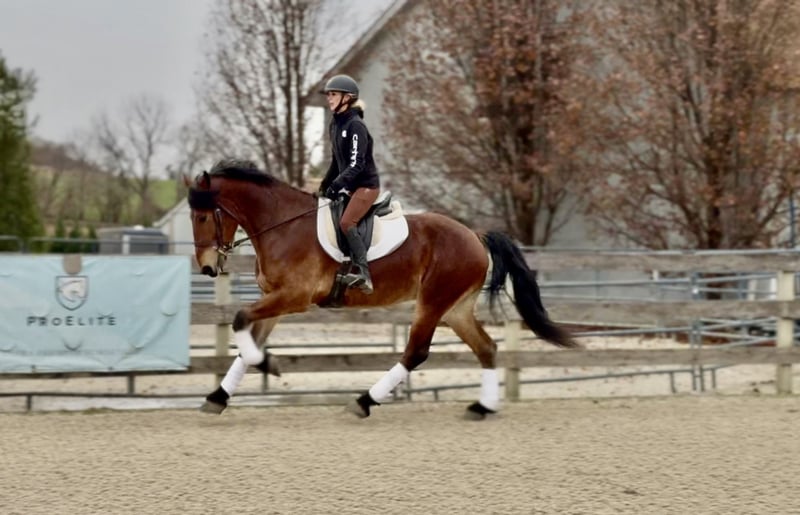 🎄𝐃ER HOLIDAY-CLASSIC🎄 läuft jetzt bis MONTAG, 15. DEZEMBER – exklusiv auf der Website von HorseBid erhältlich! Für weitere Informationen und zur Anmeldung besuchen Sie bitte: www.Horsebid.com VERKÄUFERKONTAKT: CM Farms 717-875-2061 STANDORT: Gap, Pennsylvania ZUCHT: Friesian/Belgian EINGETRAGEN: Nein FARBE: Fuchs HÖHE: ca. 16,2 hh ALTER: 3 Jahre Geschlecht: Wallach Wie atemberaubend schön ist dieser Kerl!? 🤩 Rodger ist ein fast 4-jähriger Friesian/Belgian-Mix-Wallach. Mit einer Schulterhöhe von etwa 16,2–3 hh hat er schon lange Beine (und wächst noch!). Rodger hat bereits einige Spitznamen, wie alle Favoriten: Rodge, Rodgie, Rodgie Poo, Baby Rodge, Rodgie Bear und viele mehr – alles liebevolle Spielereien rund um seinen Namen. 😆 Er ist eine absolute Freude in unserem Stall – so willig, zu gefallen, und unglaublich athletisch. Während wir normalerweise die Cadillac-Modelle der Pferdewelt anbieten, ist Rodger eher der Porsche – das Sportauto unter den Kaltblut-Mischlingen! Er ist leichter gebaut, hat eine gute Arbeitsmoral und ist ein leichtfüßiges, reitbares Pferd! Wahrscheinlich ist er nichts für Oma oder Ehemann, aber wenn Sie vorwärts orientiert sind, dabei aber sicher und vernünftig bleiben wollen – verpassen Sie ihn nicht! Mit ihm sind die Möglichkeiten endlos. Rodger macht das Reiten wirklich Spaß. Er zeigt eine beeindruckende Selbsthaltung und Balance – für sein junges Alter. Er ist ein Überflieger und äußerst intelligent, weshalb ein aufmerksamer Reiter erforderlich ist, um seinen Geist und Körper zu beschäftigen. Rodger ist die Art Pferd, die genau das gibt, was man investiert – er macht Sie durch sein Verhalten zu einem besseren Reiter, da er Sie selbstbewusster macht. Er reagiert auf jede Ihrer Bewegungen, egal ob beim Trab, einer leichten Halbhaltung oder einer Lockerung – alles wird registriert. Seine Lieblingsgeschwindigkeit ist schnell, er ist aber auch leicht anpassbar und kann auf Wunsch einen schönen, langsamen, gesammelten Sitztrab zeigen. Sein Galopp ist groß und schwebend und lässt Sie das Gefühl haben, auf der Welt zu stehen! Er macht mühelos Übergänge und hat eine flüssige, raumgreifende Bewegung. Er reagiert auf Ihre Sitz- und Stimmhilfen für ein „Stopp“ und legt bereits besser Seitengänge an den Tag als Pferde doppelt seines Alters! Er liebt einen ruhigen, sanften Reiter und reagiert nicht gut auf eine harte Hand oder einen groben Menschen. Er hat keine schlechten Angewohnheiten oder Macken und ist niemals ungezogen, ängstlich oder dumm. Im Gegenteil – er gibt einfach immer sein Bestes! Rodger hat einen erstaunlichen Kopf für sein Alter und ist ein echtes Unikat. Er ist unglaublich lieb – einfach ein großes Baby mit der ganzen Welt vor sich. Im Gelände ist Rodger bereits viel unterwegs gewesen und liebt Abenteuer! Er war dieses Jahr bei Jagdpferden und Papierjagden im Einsatz, und wir können uns gut vorstellen, dass er auch beim Hunderennen viel Spaß machen würde! Er behält seine Aufmerksamkeit in einer lebhaften Umgebung, ist trittsicher und zuverlässig. Er bleibt vorwärts motiviert, ohne ständig an der Zügel zu ziehen. Er ist auch schon über Loghürden und kleine Coops gesprungen und hat dabei viel Sprungkraft gezeigt. Wir haben ihn einmal für eine Geländeschulung genommen, und er hat uns mit seinem Talent begeistert! Bei seinem Alter ist es wichtig, nicht zu viel Springen zu machen, weshalb wir es nur eingeführt haben – aber wir haben keinen Zweifel, dass er problemlos über 1,10 m (3’6’’) hinauswachsen wird, wenn er älter ist. Wenn er so weitermacht, wird er sicherlich wie der Star, der er ist. Er ist mutig bei Bachüberquerungen, Brücken und Tunneln. Er geht auch gerne ins Wasser, zum Beispiel für einen kleinen Badestopp. Im Gelände galoppiert er durch Wiesen und windige Waldwege, ohne mit der Wimper zu zucken. Er hat alles gesehen, was man auf einem belebten Trail erleben kann, und ist wahrlich weise über seine Jahre hinaus. Unter dem Sattel ist Rodger ein harter Arbeiter – und ein echtes Schmuckstück! Er ist unkompliziert, hat die Grundgangarten gut drauf und wir könnten ihn in seinem Alter kaum besser beschreiben. Er ist reaktionsschnell, willig und zuverlässig. Er wurde nicht überfordert oder hart gearbeitet. Dieser Kerl nimmt alles gelassen hin und ist bereit, sich voll ins Zeug zu legen – ohne Fragen zu stellen. Seine großen Bewegungen sind ein echter Blickfang! Wir können nur erahnen, wie hübsch er noch wird, wenn er noch wächst. 🙌🏼 Im Stall hat Rodger seinen Spitznamen „Baby Rodge“ bekommen, weil er einfach das größte Schmusebärchen ist. Er ist der Typ Pferd, der mit seinem Menschen eine enge Bindung eingeht. Anfangs zeigt er eine ruhige, stoische Art, aber sobald er Sie kennt, sucht er nach Leckerlis in Ihren Taschen und kuschelt sich für Streicheleinheiten an. Er ist immer brav – beim Putzen, Anreiten, Baden und beim Hufschmied. Dieser Kerl ist im Stall so ruhig wie eine Maus, ohne schlechte Angewohnheiten. Er lässt sich problemlos zu dritt auf die Weide führen und ist äußerst manierlich. Er lädt ruhig in den Hänger ein und kommt mit allen gut aus. Er will immer ein braves Pferd sein und in jeder Situation gefallen. Schnell hat er sich zum Stallliebling entwickelt, und wir lieben ihn für alles, was er ist. Wenn Sie glauben, dass Sie gut zu Rodger passen, melden Sie sich bei uns! Aktuell ist er geimpft, entwurmt, beim Hufschmied, Zahnarzt und hat einen aktuellen Coggins-Test.