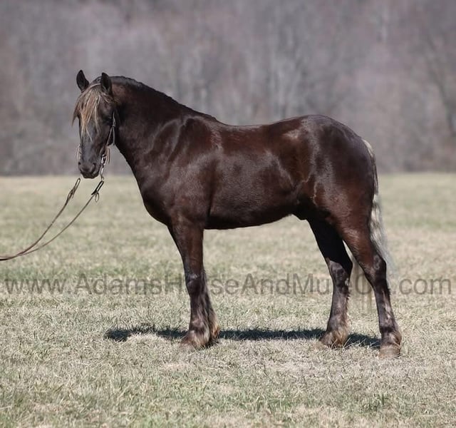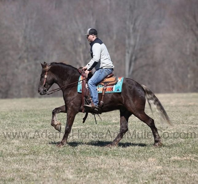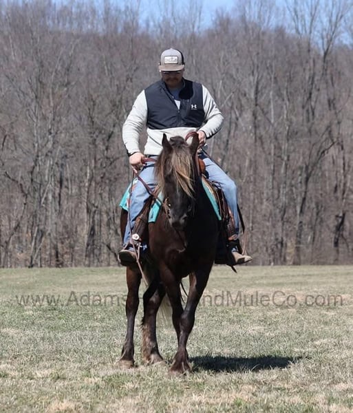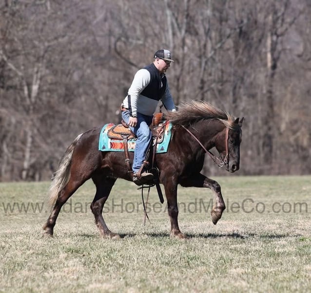 Go to visit our website for more pics and a video. AHAMC has been in the horse business and sold horses over the internet since 2005. We have a long track record of success with hundreds of happy customers. We work hard to match riders with the correct horses and specialize in beginner safe, family friendly horses that have been used and checked out by our family! We can set up transportation anywhere in the US and look forward to working with you. Wow talk about different! Dollar is one of the most unique geldings that you will find! He is a Silver Dapple/Chocolate flax mane and tail registered Friesian Sport Horse, Gelding that is stocky built and is standing around 15H! He is 4 years old with a mind that is wise beyond his years! Dollar has been ridden around the ranch, checked cows and rode fences. He is a laid back type of Friesian horse that will just walk out down the trails with no hesitation. He has been on camping trips and has been ridden by all ages of riders. When out on the ranch or going down the trails he will cross creeks, ditches, logs and navigate rough rocky areas. He is safe in traffic safe whether that be trucks or cars. He walks on a loose rein, has a nice jog, his lope is slow and collected plus he lopes very nice circles on a loose/draped rein! He has been exposed to all kinds of wildlife such as deer or turkey. He is athletic and would be a great horse to put under English tack to go over the rails with. He pastures well with others and rides the same after time off. Dollar is versatile, easy to ride and with a personality that is easy to love! Feel free to call Eric 606-308-2461 with any questions! Go to visit our website for more pics and a video. AHAMC has been in the horse business and sold horses over the internet since 2005. We have a long track record of success with hundreds of happy customers. We work hard to match riders with the correct horses and specialize in beginner safe, family friendly horses that have been used and checked out by our family! We can set up transportation anywhere in the US and look forward to working with you.