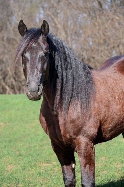Black Jack, hongre de 5 ans, 15 mains, croisement Friesian noir
