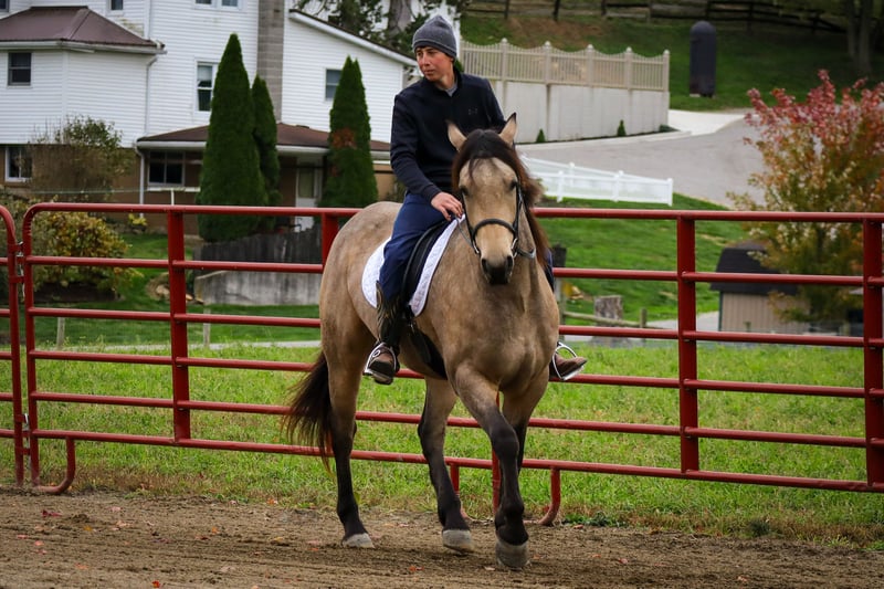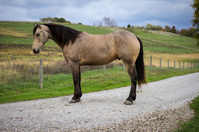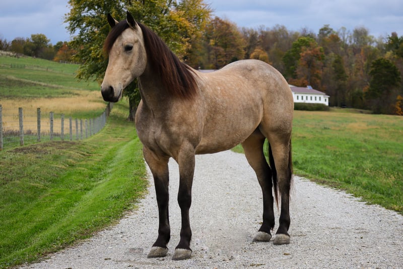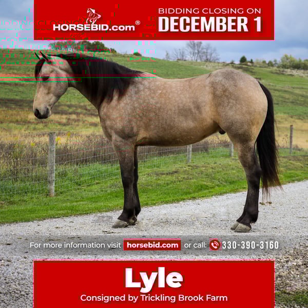 ⚜️ 𝓽𝓱𝓮 𝐇𝐨𝐫𝐬𝐞𝐦𝐚𝐧'𝐬 𝓢𝓱𝓸𝔀𝓬𝓪𝓼𝓮⚜️ Happening now thru MONDAY | DECEMBER 1st - Available EXCLUSIVELY on HorseBid's website! For more details and to register visit: www.Horsebid.com CONSIGNOR CONTACT: Trickling Brook Farm 330-390-3160 LOCATION: Sugarcreek, OH BREED: Friesian x Quarter Horse REGISTERED: Yes REGISTERED NAME: Maple Creek Lyle COLOR: Buckskin HEIGHT: 15.2 AGE: 4 GENDER: Gelding Lyle is a 4 yr old Buckskin Friesian x Quarter Horse cross gelding standing 15.2 hh tall. he was bought as a weanling and has been on the same farm for the last 3 yrs. Check this guy out! He’s a great color, size, and build. He is going well English or Western and rides walk, trot, canter under saddle. He responds to the leg and rides in a snaffle or a curb bit. Lyle is comfortable pushing cows and riding around the trails. He goes out alone and crosses logs, creeks, and more! He leads, loads, ties, and stands great for the blacksmith and saddling. Lyle is selling as a prospect and is ready to begin training for a specialized discipline. He can go any which way someone may like, but might be most suited for Working Equitation, trail riding, dressage, and more. He has a great temperament and wants to connect to his rider. He comes when called and is a pleasure to be around! Anyone is welcome to come check him out! Call 330-390-3160 FMI