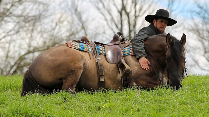 Champ, hongre de 5 ans, 15,2 mains, croisement Frison / Quarter Horse, gris foncé