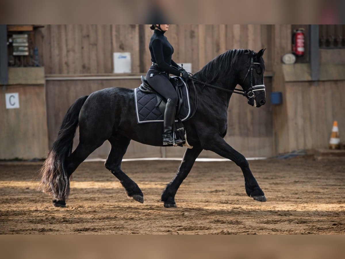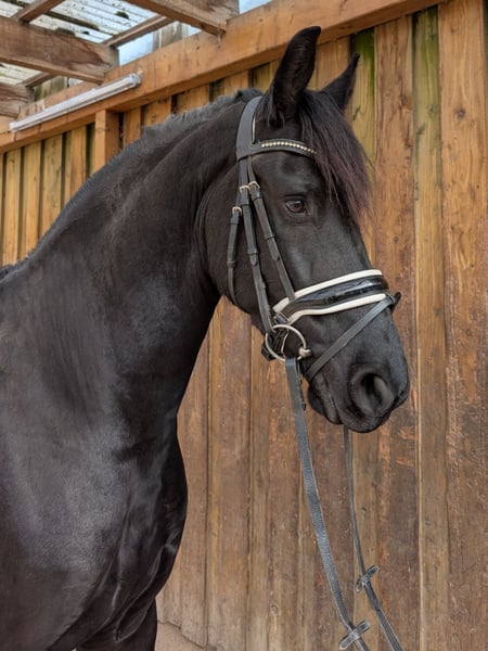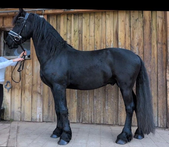For sale is a typy Friesian gelding currently standing at approximately 1.60 m (still growing). A young, charismatic Friesian with a strong presence and a very friendly character. He is gentle and people-oriented in daily handling, attentive, and willing to please. At the same time, due to his age, he is naturally still inexperienced, and he should continue to gain experience and learn patiently. The gelding has been worked with patience and care, following young horse training principles. Currently, he is ridden only once a week for a few minutes in all gaits and behaves well during these sessions. Otherwise, he is regularly engaged through groundwork, lunging, or free turnout in the paddock. He shows himself to be trainable, motivated, and sensitive, with good potential for further development. Due to his age, he requires an experienced rider who can give him the time to continue developing physically and mentally, expanding his experience. The sale is made with a heavy heart, as he is too energetic for his current (older) owner and deserves a more active training and development program in the long term than she can provide. The gelding is vaccinated and dewormed. Good X-ray results are available. Interested parties please contact: 0162 1057976