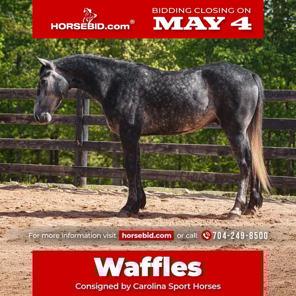 ▪️▫️◾️𝐭𝐡𝐞 𝑴𝒂𝒚 𝐒𝐞𝐥𝐞𝐜𝐭◾️▫️▪️ Happening now thru MONDAY | MAY 4th - Available EXCLUSIVELY on HorseBid's website! For more details and to register visit: www.Horsebid.com CONSIGNOR CONTACT: CAROLINA SPORT HORSES 704-249-8500 LOCATION: Clover, SC BREED: FRIESIAN X MORGAN REGISTERED: No COLOR: DAPPLE GRAY HEIGHT: 16 AGE: 5 GENDER: Gelding 🐴 WAFFLES – Confidence, Class, and the Kindest Mind Waffles is a 5-year-old dapple gray Friesian x Morgan cross standing the perfect size with the kind of presence that turns heads everywhere he goes. Between his eye-catching color and his soft, kind expression, he is truly everyone’s favorite from the moment they meet him. But what really makes Waffles special isn’t just how he looks—it’s how he makes you feel. If you’re honest with yourself, the biggest concern most riders carry isn’t riding… It’s whether the horse is going to take care of them. Waffles was built to do exactly that. He is straightforward, uncomplicated, and incredibly easy to ride. He does not look for trouble, he does not get in a hurry, and he is the same dependable partner every time you step in the saddle. He is safe and trustworthy—even for the most timid of riders—and gives you the kind of confidence that brings the joy back into riding. Out on the trail, Waffles is a true professional. He handles obstacles with ease, stays calm in new environments, and is the type you can simply point and go without worry. Whether you’re riding alone or with others, he stays steady, willing, and relaxed. In the arena, he continues to impress. Waffles has experience in working equitation and approaches his work with a willing attitude and a patient mind. He is happy to do whatever is asked of him, never rushing, never resisting—just quietly trying to please his rider. Around the barn, he is just as enjoyable. He is kind, gentle, and easy to handle, making him a favorite for anyone who spends time with him. Waffles is the kind of horse that checks every box—safe, beautiful, versatile, and kind. Whether you’re looking for a confidence builder, a trail partner, or a horse to enjoy in and out of the arena, he is ready to step in and take care of you. If you’ve been searching for one that makes riding feel easy again… Waffles is that horse.