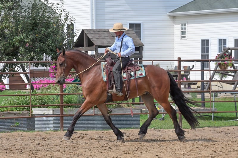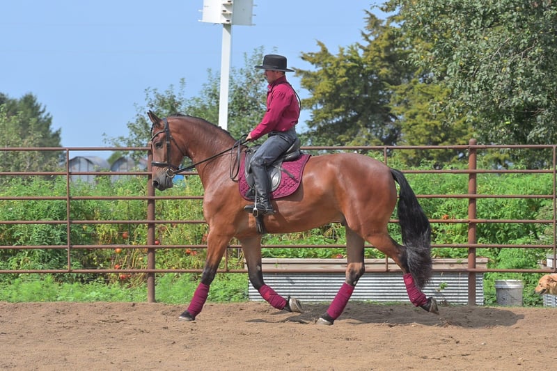ONLINE-AUKTION Bieten Sie jetzt auf www.PlatinumEquineAuction.com Startgebot: 3.500 $ Auktion endet am 2. November 2025 Benötigen Sie ein neues Sattel? Schauen Sie auf unserer Website oder Facebook bei White Rock Saddles vorbei. Ein Blick auf Donald genügt, um sofort zu erkennen, warum Friesianer als königliche Pferde bekannt sind. Er verkörpert Eleganz gepaart mit Leistungsbereitschaft. Donald ist ein 4-jähriger, beim FBHR registrierter Friesian-Mix-Geländewagen, der 16,2 hh groß ist, eine Schuhgröße 3 trägt und etwa 635 kg wiegt. Er ist ein außergewöhnliches Show-Pferd mit großem Potenzial, in englischen Disziplinen zu glänzen. Donald wurde an Trails, Hindernissen im Dressurviereck und sogar am Trubel des kleinen Stadtlebens gewöhnt. Er ist vollständig desensibilisiert und bereit, seine Ausbildung fortzusetzen. Donald wurde bereits in Dressur ausgebildet und zeigt viel natürliches Talent. Seine beeindruckenden Bewegungen machen auch unerfahrenen Reitern die außergewöhnliche Begabung sichtbar. Er wurde sowohl in englischer als auch in westernspezifischer Ausrüstung geritten und besitzt eine solide Grundlage in beiden Disziplinen. Wir sind überzeugt, dass ihn diese Vielseitigkeit für seinen nächsten Reitpartner besonders attraktiv macht. Er ist ein sehr vorwärts gerichteter Bewegungsablauf, mit einem beeindruckenden Trab im Extended. Wir empfehlen ihn für Reiter mit mittlerem bis fortgeschrittenem Können oder für Reiter, die mit einem Trainer zusammenarbeiten. Auch Anfänger im Erwachsenenalter könnten Donald mit Trainerhilfe reiten. Donald ist von Zebb M, einem reinrassigen Friesianer, gezogen, und stammt von einer Sportpferdestute ab, die zu 50 % Friesianer ist. Damit ist dieser beeindruckende Wallach zu 75 % Friesianer. Ob Sie englische oder westernliche Disziplinen bevorzugen – wir sind überzeugt, dass Donald in Dressur oder Western Dressur hervorragend performen wird. Mit weiterer Ausbildung ist er auch in Springen, Vielseitigkeit oder Reitkunst sehr wettbewerbsfähig. Er meistert den Straßenverkehr problemlos und lässt sich von den üblichen Ablenkungen in kleinen Städten nicht stören. Wasser überquert er ohne Zögern, ebenso wie Baumstämme im Trail oder gefallene Holzstücke. Er wurde sowohl mit Groß- als auch mit Kleintieren sowie Geflügel geritten und hat auch Wildtiere auf Feldern und Trails erlebt. Im Dressurviereck zeigt Donald im Innen- und Außenbereich stets selbstsichere Leistungen. Seine Beweglichkeit ist beeindruckend, er passt sich mühelos verschiedenen Bodenverhältnissen an. Jedes Mal, wenn man auf ihn aufsitzt, ist die gleichbleibende Qualität seines Reitens garantiert – auch nach längerer Pause. Er ist ehrlich, humpelt oder schnappt nicht, selbst wenn er frisch ist. Donald ist gut erzogen und verhält sich vorbildlich, egal ob er auf der Koppel steht oder im Stall. Im Offenstall kommt er gut mit Artgenossen zurecht und ist leicht zu fangen. Er kann an der Box, an der Kreuzgalgen angebunden werden, ist ein vorbildlicher Partner für Hufschmied und Tierarzt, lässt sich problemlos herrichten, ist gut zum Borten und steht ruhig beim Aufsatteln, am Polowrap und beim Aufstieg. Ich stehe gern für ein Gespräch mit Ihnen oder Ihrem Trainer zur Verfügung, um sicherzustellen, dass Donald perfekt zu Ihnen passt. Er wird mit einem aktuellen negativen Coggins-Test sowie einer Pre-Purchase-Untersuchung meines Tierarztes verkauft. Bei Interesse an einem Kennenlernen von Donald oder Fragen vor Ende der Auktion rufen Sie bitte Edwin Raber unter 319-283-0616 an. Standort: Fairbank, Iowa.