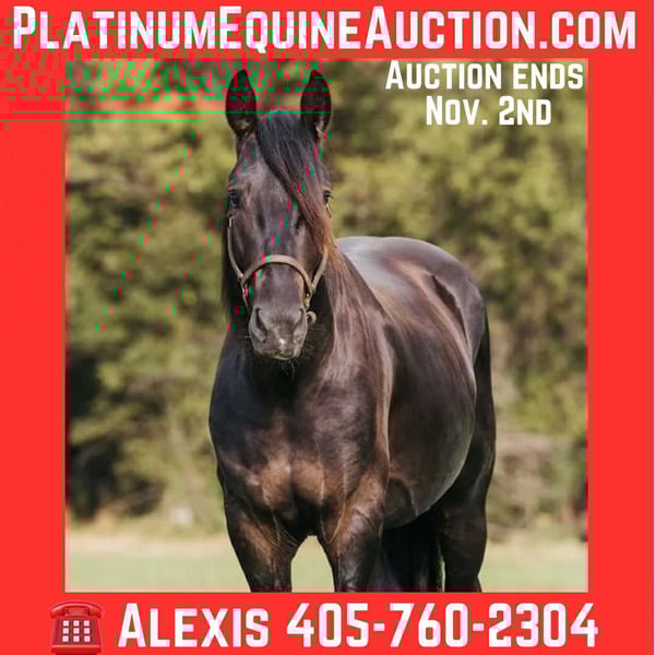 ONLINE AUCTION Place your bids at www.PlatinumEquineAuction.com Starting Bid $3500 Auction ends November 2nd, 2025 Need a new saddle? Check out White Rock Saddles on our website or Facebook Monster AKA Camelot By Midnight is a 15h, 5 year old, registered Friesian sport horse gelding. Monster would make the perfect trail/ranch horse. He is extremely easy going and has had a few ropes swung off of him. He has also had many trips to the river and walks in and out of water with ease. He was lightly shown when he was 2 and did exceptionally well and handled the show environment with ease. Monster is searching for his next partner that can take him to his full potential! He is located in Mcloud, OK. For more info contact Alexia Amend 405-760-2304. ONLINE AUCTION Place your bids at www.PlatinumEquineAuction.com Starting Bid $3500 Auction ends November 2nd, 2025 Need a new saddle? Check out White Rock Saddles on our website or Facebook