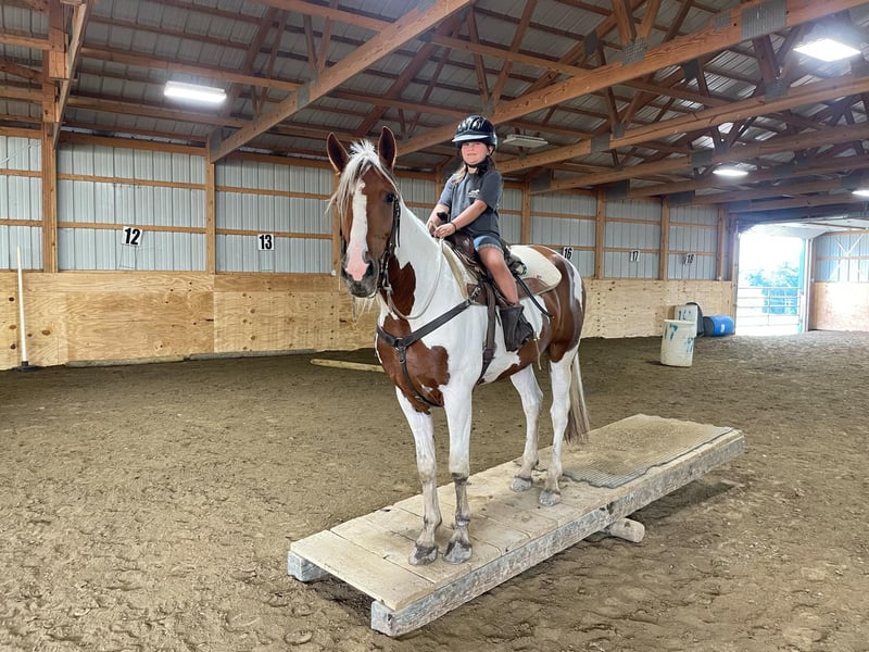 ONLINE AUCTION Place your bids at www.PlatinumEquineAuction.com Starting Bid $3500 Auction ends September 22nd, 2024 Need a new saddle? Check out White Rock Saddles on our website or Facebook! Chrome is a stunning 4-year-old Friesian/ Paint cross gelding standing at 15.1 hands. He is the type of horse that loves attention. Chrome rides English and Western and has a great handle and stunning gaits. He has a smooth walk, trot, canter, backs, and knows how to use his body. He will ride in a snaffle and has a very soft mouth. Chrome is extremely athletic and very light on his feet. He enjoys strolling along the trails or in the arena, but he is equally prepared to take a jump like a warmblood. He has lots of hind-end power and loves to jump! Chrome is safe both on the ground and under saddle. Kids, teens, and adults have ridden him, and they all enjoy him; he can take a joke and will try anything you ask! He is a trail rider’s dream horse; point him in any direction, and he’s going there. He will walk down the trail on a loose rein, cross any water and logs, and climb any hills you may encounter. He will ride with a group or by himself just the same, and is happy go lucky and always up for an adventure. He’s confident and sure-footed, making him the ultimate trail companion in any terrain. He is an absolute statue for the farrier and has excellent feet, but we keep him shod all the way around because of our terrain. Dogs, cows, sheep, goats, and donkeys don’t bother him. If you are looking for a SAFE and even-tempered horse that the whole family can enjoy and who has his whole life ahead of him, then Chrome is it! He is UTD on all shots and has a current coggins. He sells with no vices. PPE are welcomed at potential buyers expense. Contact Dayton Wolcott 585-734-0169 for more information. Located in Warsaw, NY. ONLINE AUCTION Place your bids at www.PlatinumEquineAuction.com Starting Bid $3500 Auction ends September 22nd, 2024 Need a new saddle? Check out White Rock Saddles on our website or Facebook!