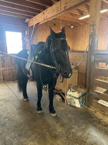 VERFÜGBAR AUF DEM ONLINE-PFERDEMARTKLOK AT www.MagicHorseAuction.com GEBOTEN BIS DIENSTAG, 17. Februar! – KAUF-OPTION „Buy It Now“ VERFÜGBAR! *Der endgültige Preis wird auf der Auktion festgelegt* VERKÄUFER-KONTAKT: Cindy Schie, Tel. 716-200-2937 STANDORT: Akron, NY Onyx, auch bekannt als Blackhawk, ist ein 6-jähriger, eingetragener Friesian/Pony-Geländefahrpferd, ca. 1,45 m groß. Er ist gut ausgebildet zum Reiten und Fahren. Er reitet sowohl im englischen als auch im western Stil. Ein fantastisches Arena-Pferd! Er läuft eine schöne Kreislinie, nimmt den Schritt, Trab und Galopp mühelos auf. Leg-yields gelingen problemlos. Er zeigt sich auf Hindernisparcours sehr zuverlässig. Er steht ruhig und geduldig an der Aufstiegshilfe, hält an und bleibt stehen, wenn man es verlangt. Er nimmt beide Führungen korrekt auf. Blackhawk wäre ein vielversprechendes Dressurpferd. Außerdem wurde Blackhawk auch auf dem Bauernhof eingesetzt. Er ist trail-erprobt, überquert Bäche, geht mühelos über Baumstämme und erklimmt alle Hügel, die man ihm vorsetzt. Er ist sowohl in der Gruppe als auch alleine verkehrssicher und bleibt geduldig an Stoppschildern stehen. Dieser hübsche Wallach hat zudem vorbildliche Bodenmanieren und eine äußerst freundliche Persönlichkeit. Er ist leicht zu fangen im Stall und draußen. Er lässt sich gut an der Longe anbinden und in Kreuzgurten sichern. Er ist einfach zu handhaben – sogar Kinder können ihn ohne Erwachsenenhilfe putzen, satteln und reitfertig machen. Er steht ruhig beim Hufschmied und Tierarzt. Blackhawk lässt sich gut verladen und bleibt während des Transports ruhig. Er hat eine super liebevolle Einstellung und liebt Aufmerksamkeit! Blackhawk ist 100 % gesund, mit Röntgenbildern und PPE! Für weitere Informationen kontaktieren Sie Cindy unter 716-200-2937! Standort: Akron, NY