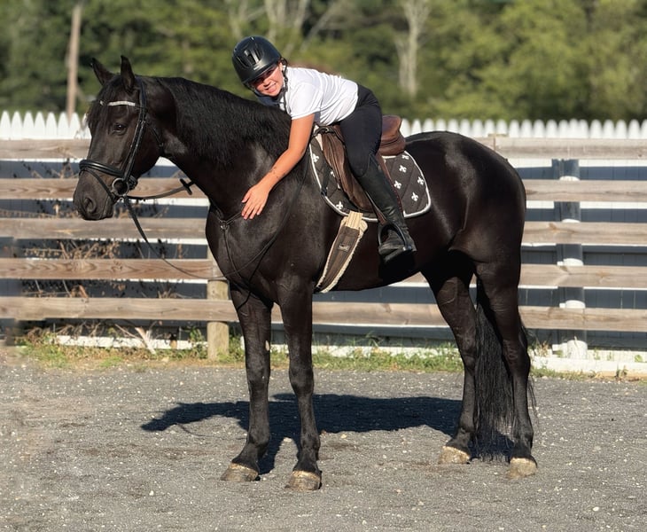 "AVAILABLE ON ONLINE HORSE AUCTION AT www DOT MagicHorseAuction DOT com BIDDING OPEN NOW thru TUESDAY | September 30TH! - BUY IT NOW AVAILABLE! *Final price will be determined on auction site* CONSIGNOR CONTACT INFO: Christine Helmlinger 609-432-9779 LOCATION: Allentown, NJ "Wow look at him!! Do I even say more! Dream horse alert!! Extremely in your pocket type Kick to go ride. Not forward but moves easy off leg. One person owner and breeder with full history and sound!! I’ve sold other horses on magic horse and I have many many happy clients and no complaints! My horses are exactly how I describe them!! Meet Te-beauty This is your 4th level dressage prospect that's (out of the famous TEjerk stud) Standing a solid 16.2y 7 yr old Friesian sport horse gelding with application paperwork in hand. He is the perfect size and age for everyone! This breathtaking gelding is the picture of elegance and presence. He has that rare “wow factor” that turns every head the moment he steps into the arena. With naturally expressive movement, he shows off an incredible toe-flipping extended trot that feels as smooth as it looks with a lovely canter. He will collected up with asked and holds his heads very consistently, where you ask. Beauty does look at new things at times but he is very controllable! My 9yr old daughter rides him with ease! Beauty is training for dressage, he is proving to be both talented and willing. Sweet and kind in the barn, he loves people and is a pleasure to work with every day. His uphill build, fluid gaits, and striking black coat make him a true standout both in and out of the ring. If you’re looking for a horse with the talent, temperament, and beauty to shine in the dressage arena, this elegant partner is the one. Beauty will also take a jump if I asked and it's very willing. So if someone is looking for a three day events prospect that would also work for him. Sire isn’t the last 2 pics. Located in Allentown New Jersey my cell is 609-432-9779. Shipping quotes available. No vices, issues or maintenance!!