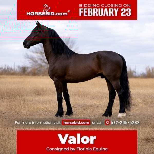💎 𝐓𝐇𝐄 𝓓𝓲𝓪𝓶𝓸𝓷𝓭 𝐒𝐇𝐎𝐖𝐂𝐀𝐒𝐄 💎 Happening now thru MONDAY | FEBRUARY 23rd - Available EXCLUSIVELY on HorseBid's website! For more details and to register visit: www.Horsebid.com CONSIGNOR CONTACT: Florinia equine 572-205-5282 LOCATION: Guthrie, OK BREED: Fresian x REGISTERED: No REGISTERED NAME: Valor COLOR: Black HEIGHT: 16.3 AGE: 8 GENDER: Gelding ⭐ Valor ⭐ 16.3h Black Gelding | 8 Years Old 75% Friesian × 25% Percheron If you’ve been searching for that rare gentle giant with presence, brains, and true versatility — Valor is it. This stunning black gelding is the definition of a kid horse deluxe wrapped in a powerful, eye-catching package. Valor is exceptionally gentle, safe, and kind. He’s the type you can trust with the family, yet he has the size, training, and ability to impress wherever he goes. ✔ Versatile & Proven • Pulls a wagon confidently • Shown both English and Western • Honest, willing jumper • Experienced pony horse at the racetrack • Seasoned trail horse — crosses water, brush, obstacles, traffic, and anything else without hesitation ✔ Temperament You’ll Love Valor is truly a gentle, gentle, gentle soul. Quiet minded, respectful, and extremely people-oriented. He enjoys attention, stands quietly, and is easy to handle in every way. ✔ Care & Condition • Sound • Exceptionally well cared for • Maintained with top-notch management • Strong, healthy, and ready for his next partner ✔ The Total Package Whether you want: • A safe family horse • Trail partner deluxe • Show prospect • Driving horse • Pony horse • Or just a breathtaking everyday ride Valor can do it all — and look incredible doing it. Big, black, kind, and versatile horses like this are hard to find, especially one with his disposition and experience.