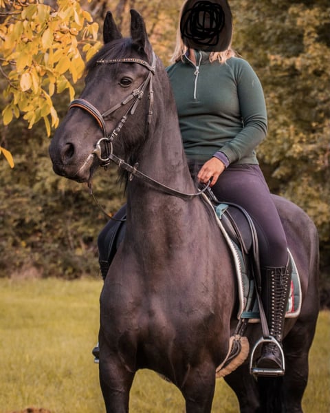 Vends ma douce jument Frisienne, née en 2015, mesurant 1,63 m. Wietske se montre confiante et sûre d’elle aussi bien en solo qu’en groupe lors des sorties en extérieur, et connaît également la carrière d’équitation. Elle marche au pas et au trot en exécutant tous les exercices de flexion et tous les allures de base sans problème. Wietske n’a aucune mauvaise habitude, elle est très douce en main et, grâce à son tempérament calme et plutôt détendu, elle convient aussi bien aux cavaliers débutants, aux enfants qu’aux cavaliers un peu plus nerveux. Si vous cherchez un cheval vif ou fougueux, elle ne sera probablement pas la meilleure option. Elle est actuellement dénuée de ferrure et évolue dans un troupeau mixte en paddock extérieur, mais elle a également connu la vie en box dans le passé. Son tempérament équilibré en fait une compagne idéale pour les cavaliers de loisirs. Wietske est malheureusement sensible à l’eczéma estival, elle doit donc être vermifugée et déparasitée régulièrement, et doit être déparasitée en été pour bien traverser cette saison. Elle est régulièrement vermifugée et suivie chez le vétérinaire pour ses soins dentaires. Pas d’offres de marchands, priorité au prix !
