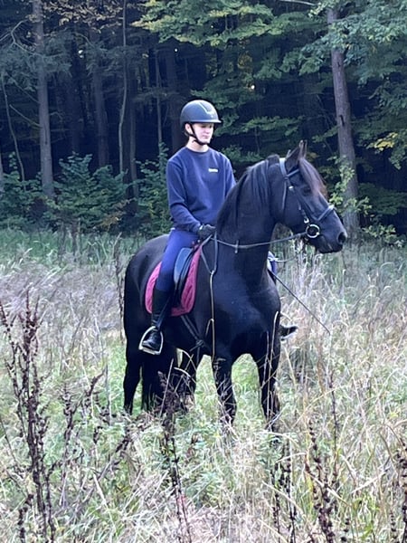 La Luna Unser liebe Friesenstute ist 14 Jahre und 1,56 m groß. Im Umgang ist La Luna eine Herzensgute Stute. Sie wurde in allen drei Grundgangarten geritten. Sie besitzt sehr bequeme Gänge und wäre auch für Anfänger geeignet. Sie kennt das Gelände , den Reitplatz und die Longe. Sie ist absolut für Anfänger oder ängstliche Reiter geeignet. La Luna kann bis zur E -Dressur geritten werden. Sie besitzt volle Papiere, ist gechipt, geimpft und entwurmt. Ein Transport wäre möglich. Tel:0160/1884786