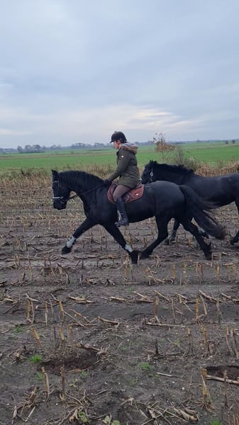 Met pijn in mijn hart zoek ik een nieuw, liefdevol thuis voor mijn prachtige Fries-Hollandse merrie Thalia (geboren in 2012). Ik heb Thalia op haar twee jaar direct van de fokker gekocht, en sindsdien is ze in mijn bezit. Ze is altijd veelzijdig ingezet. Van cirkustrainingen tot deelname aan wedstrijden (E-multi discipline, ruiterwedstrijd met haar rijdersmaatje), tot diverse optochten met trommels en kanonschoten, ringrijden en ritten alleen, in groepsverband of met handpaard – voor Thalia is niets onmogelijk. Ze blijft altijd kalm en is voor iedereen goed handelbaar. In de kudde staat ze onderaan en is zeer sociaal (vermijdt conflicten). Ze laat zich probleemloos alleen laden en vervoeren, en is ook altijd netjes bij de hoefsmid (blank hoef). Thalia is uiterst makkelijk in de omgang en geeft haar mens altijd haar beste. Omdat ze interessant is voor de fokkerij, heeft ze in 2019 probleemloos en instinctief een gezond, typvol merriefoal geworpen (Fries x Hannover). De merrie is eveneens in mijn bezit en inmiddels actief in springen tot A*-niveau en in de veelzijdigheid (zie de laatste drie foto's). Dit is geen noodgeval! Ik geef Thalia alleen weg als alles echt klopt. Aanbiedingen van handelaren en rijscholen worden niet beantwoord. Vanwege haar ras is ze ook geen gewichtsträger. Meer foto's en video’s op aanvraag.