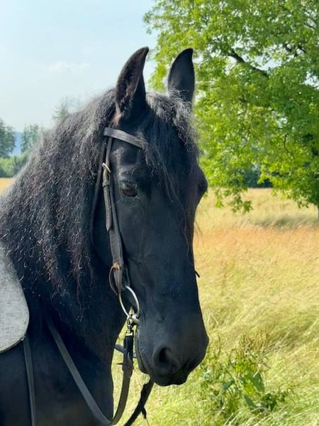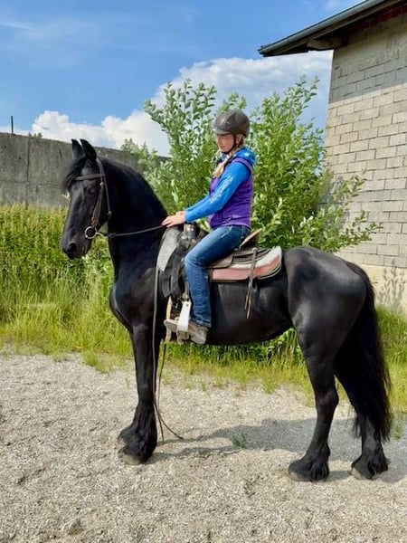 Emma is a friendly, loving Friesian mare with good Dutch lineage and KFPS papers. She is currently being ridden recreationally in the countryside and always strives to please everyone. Emma integrates well into the equine community and is accustomed to paddock living. Emma is looking for a good home and people who will love her.