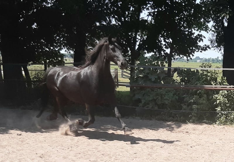 Bitte nur reagieren per Anruf oder Whatsapp. Email sehen wir leider nicht. Direkt vom Züchter ab zu geben: Sehr hübsche noch rohe Zuchtstute, wegen Bestandsreduzierung. Geboren 2008 etwa 1.62m gross, barock vom Typ und traumhaft schöne Gänge. Mit Equidenpass, kein KFPS Stammbuchpapier. Die Stute wird bei uns nur für die Zucht benutzt, ist hier geboren und hat mehrere wunderschöne Fohlen gebracht. Jeder Stutenherde hat bei uns ihre eigene Deckhengst. Wir züchten nur und trainieren nicht. Sie ist also noch komplett roh und noch nicht Halfterführig. Wenn sie ein Fohlen bei Fuss hat ist sie ihr Fohlen gegenüber sehr schützend. Sie läuft 24/7 beim Friesenhengst und kann deshalb tragend sein für nächstes Jahr. Wir züchten schon seit mehr als 30 Jahre Friesen, Barock Pintos und Friesenmix Pferde. Ab unserem Gestüt in die Niederlände haben wir viele wunderschöne Pferden zum Verkaufen. Alle noch komplett roh. Bei uns finden sie bestimmt ihrem Traumpferd. Unsere Pferden wachsen sehr natürlich auf in grossen Herden und sind deshalb sehr gut sozialisiert. Hier leben sie ein Traumpferdeleben: im Frühling und Sommer auf grosse Wiesen. Im Winter in grosse Gruppenstallen. Einen guten Charakter, cool im Kopf, stark, gesund und lieb sind für uns wichtige Voraussetzungen beim Züchten. Unsere Hengste können auf wünsch gelegt werden. Sie finden uns in der nähe von Leeuwarden. Kontakt: bitte nur per anruf oder Whatsapp.