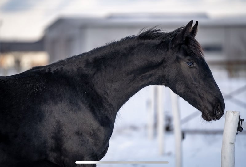 Cavalla frisona di 9 mesi in vendita. Elger 536 x Norbert 444. La madre è una mezza sorella del stallone stb Aarnold 471. Sana, abituata al paddock, coraggiosa, conosce tutte le basi come legare, dare le zampe e condurre al guinzaglio. Una cavalla di famiglia coraggiosa, ideale per l’allevamento.