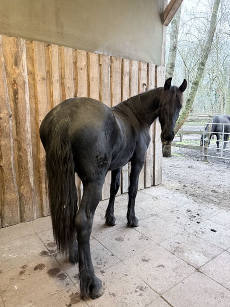 Soms loopt het leven anders en ik ben op zoek naar de allerbeste eigenaar voor mijn Friese merrie Aria (bijna 2 jaar oud) – een plek waar ze geliefd, gestimuleerd en beschermd kan opgroeien. Ik geef haar uitsluitend in zeer goede, zorgzame handen. Aria is dapper, open en vrolijk. Ze is knuffelig, lief en mensgericht. Ze is een jonge merrie die graag nabijheid zoekt, vertrouwen uitstraalt en gewoon graag wil gefallen. Ze is gevaccineerd tegen tetanus en griep, altijd kerngezond geweest en regelmatig door de hoefsmid bekeken. Aria beschikt over KFPS-papieren en stamt af van de hengst Arent 515 Sport AAA. Ze groeit bij ons op in een natuurlijke groepsverband met haar moeder en woont in een open stal. Aria wordt eens een echte blikvanger, ze heeft nu al een lange, dichte manen voor haar leeftijd. Ze brengt veel rassetypische kenmerken mee, gecombineerd met een sportief figuur, wat haar perfect maakt voor dressuur of mennen. Aria beheerst al alles wat een jonge paard in haar leeftijd zou moeten weten. We hebben al meerdere keren met haar in de trailer gereden, ook zonder haar moeder en alleen. Ze laat zich prima poetsen, kammen, of in de zomer afspoelen en wassen. Ze wandelt ontspannen mee in de groep. En ze is absoluut braaf bij de hoefsmid en de dierenarts. Eigenlijk was ze bedoeld als opvolgpaard voor mijn merrie. Maar door persoonlijke omstandigheden heb ik er met pijn in het hart voor gekozen haar een nieuwe weg te gunnen – bij iemand die haar net zo liefheeft als ik. Ik wens voor haar geen doorgeven, maar een forever home. Mensen die niet alleen een paard zoeken, maar een levensgenoot. 💛 Alleen in de allerbeste handen weg te geven. Bij serieuze interesse graag een persoonlijk bericht.
