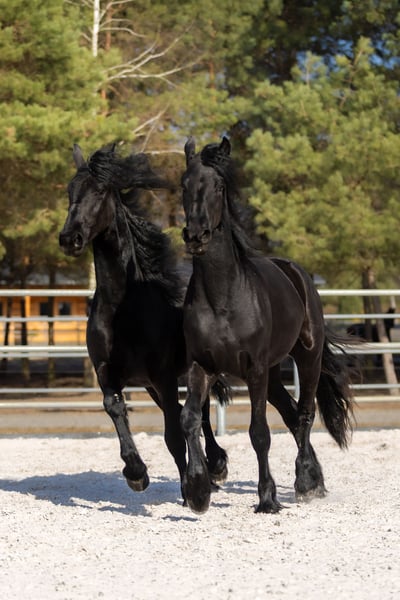 Dostępne na sprzedaż dwie 2-letnie klacze fryzyjskie. Paszporty holenderskie, księga główna KFPS. Arya z Papierni - Ulbe 506 x Nane 492 Angel Darkness - Wibout 511 x Jehannes 484 Obie klaczki zapowiadają się na piękne, duże klacze . Więcej informacji , dodatkowe zdjęcia, filmy prześlemy na Whatsapp. + 48 781 152 388