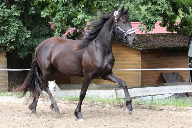 Ta młoda, elegancka klacz fryzyjska urzeka imponującym wyglądem i majestatyczną postawą. Porusza się bardzo lekko, z dużym wykrokiem i impulsem. Czy to na pokazie, czy na ujeżdżalni, z pewnością przyciągnie uwagę każdego. Urodziła się 14 maja 2023 roku i jest po Sipke 450 (Teade x Ulke) od klaczy Aria (Jurre o. x Doaitsen). Jest zaczipowana i zarejestrowana w "Veulenboek". Winni jest bardzo czujna, uważna, ale także zorientowana na ludzi i przytulna. Opanowała wszystko, co koń w jej wieku powinien wiedzieć - łatwo kopytuje, daje się prowadzić i pielęgnować. Jest również bardzo nieskomplikowana w stadzie. Oczywiście została zaszczepiona, odrobaczona i regularnie prezentowana kowalowi. Jest szczęśliwa, że może zostać w hodowli (bardzo korzystne warunki, kilku kolegów w tym samym wieku). Jest zdrowa i może zostać przetestowana w dowolnym momencie. Kilka interesujących koni w innych ogłoszeniach. Jeśli szukasz czegoś innego, skontaktuj się z nami. Chcesz się przekonać o naszej pracy? Odwiedź naszą stronę na Facebooku, gdzie znajdziesz również opinie naszych zagranicznych klientów.