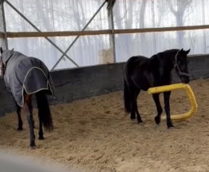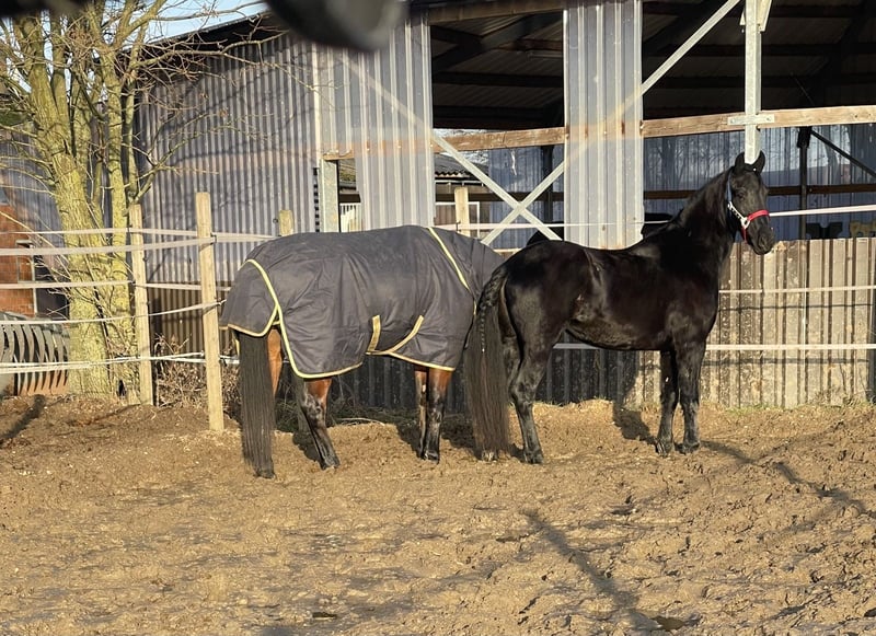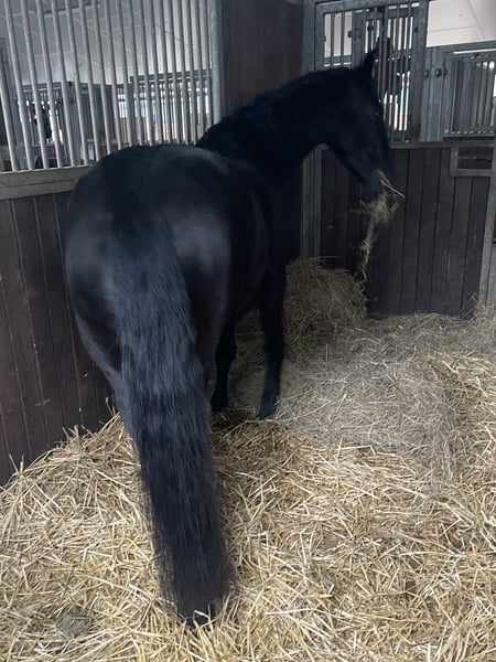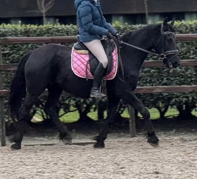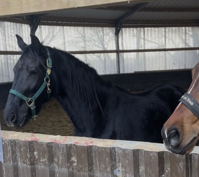 Jument frisonne mixte avec accessoires cherche une nouvelle famille