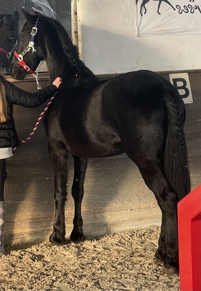 Helaas moeten wij vanwege een ernstige familieziekte ons 3,5-jarige Friese merrie, een mix, een nieuw thuis zoeken. Ze heeft momenteel een stokmaat van 1,51 m en staat nog volop in de ontwikkeling (ze is nog niet klaar). Voor ze bij ons kwam, stond ze 24/7 op grote weilanden en werd ze als driejarige in korte sessies vier keer gereden in drie gangen, ook vrij rijden (bij serieuze interesse, video beschikbaar). Omdat ze ons echter veel te speels en nog te onvolwassen leek, hebben we haar één keer per week op een speelse manier longeer- en longeerwerk gedaan. Hoewel ze dat heel braaf deed, vonden wij haar nog te jong daarvoor. We werkten consequent, maar uitsluitend met positieve versterking (wat wij haar ook voor de toekomst wensen). Ze kan kusjes geven, stampen en 'nee' zeggen op commando, evenals stil staan en achterwaarts gaan. In januari hebben we haar zadelmak gemaakt, en ze heeft geen problemen in de box en gaat overdag op de paddock. Ze is gewend aan poetsen, inspuiten en hoefverzorging. Ook bij inenten en de tandarts was ze zeer braaf. Ze ging zonder problemen op de trailer. Ze is recent gevaccineerd, ontwormd en de tandarts is 8 weken geleden geweest. Ze heeft een paspoort. Ze wordt geleverd met alle toebehoren: zadel, hoofdstel, nieuw Eskadron halster met longe, Bucas regen deken 50g, uitdekendeken, poetskist en zadelwagen. Op de kleine paddocks zoekt ze haar paardenvrienden uit; ze houdt niet van elk paard. Op de foto onder het zadel is Kyara, zes maanden jonger dan op de andere foto's. Bij interesse neem gerust contact met ons op.