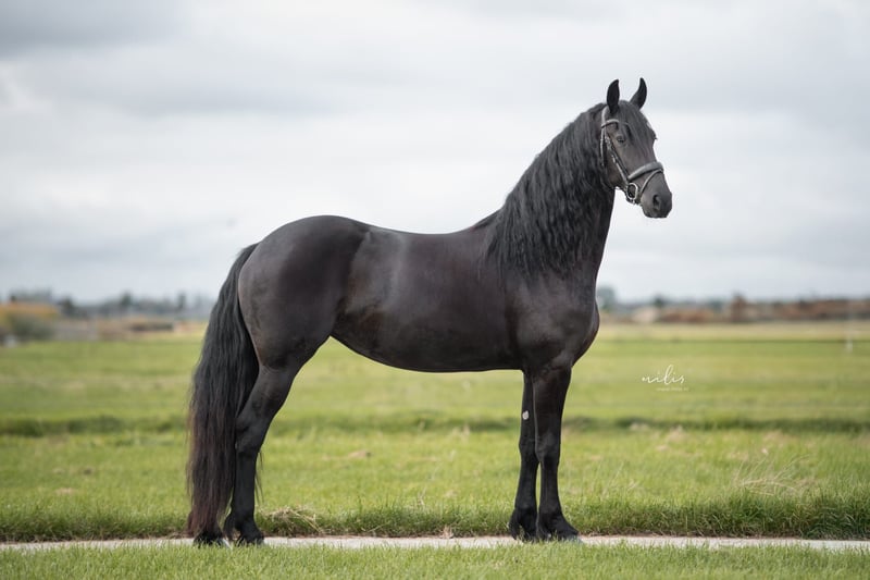 ⭐️Prachtige Friese merrie zoekt een nieuw baasje 🏠, Beautiful Friesian mare is looking for a new owner⭐️ Deze prachtige lieve 4 jarige merrie is met haar elegante hoofdje en rustige uitstraling is een plaatje om te zien en bovenal super lief en fijn beleerd onder het zadel. - Afstamming: Boet 516 x Doaitsen 420, met een mooi volpapier. Broertje is dit jaar bekroond tot KAMPIOEN hengstveulens op centrale keuring 2025 - Geboren: 2021 - Predicaat: stamboek - Stokmaat: 1.67 a 1.68 - niet drachtig Ze is rustig beleerd onder het zadel en wordt nu verder doorgereden, dit pakt ze goed op maar moet nog wel door consequente ruiter verder worden doorgereden, ze is sociaal, aanhankelijk en mensgericht. Ze is gemakkelijk op de trailer, is helemaal gezond en heeft geen stalgebreken. Ze is netjes geënt, ontwormt en komt om de zoveel tijd bij de hoefsmid en de tandarts. Ze is volledig röntgenologisch incl. hals en rug in orde bevonden. Voor meer informatie / for more information bij voorkeur WhatsApp +316-22457892.