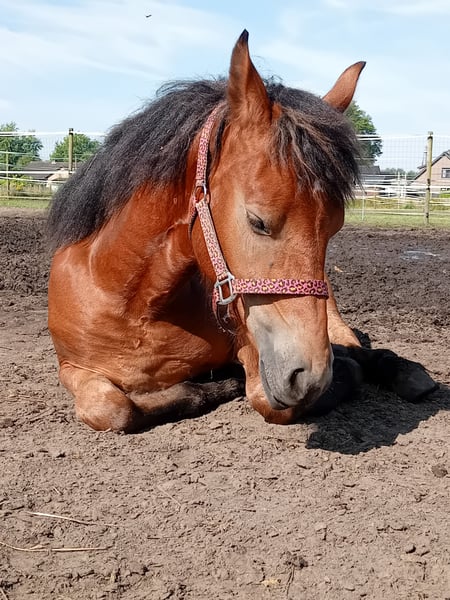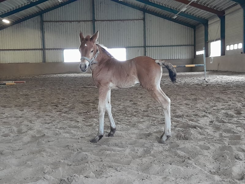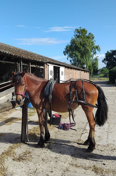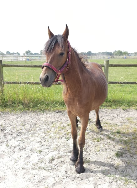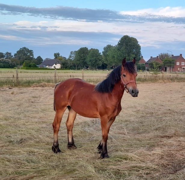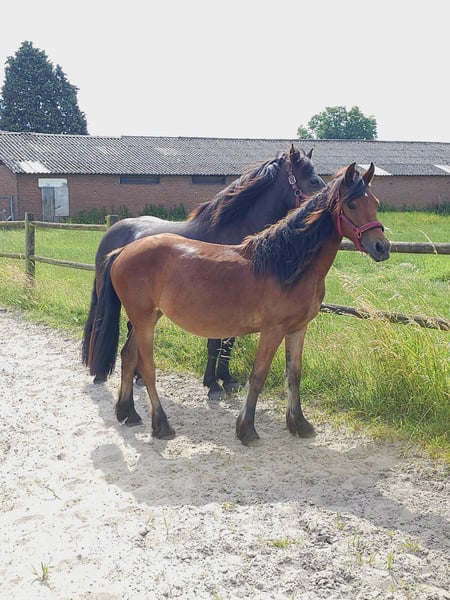 Born on July 22, 2022 Filly Currently approximately 1.43 meters tall, but still growing steadily. I expect her to reach around 1.50 to 1.55 meters. Mother is 1.45 meters (Haflinger), father is 1.65 meters (Friesian); both parents are available for viewing. I have owned her since birth. She is microchipped and has a Dutch passport. The mare is healthy and free of any defects. Easy to handle with the farrier and has already been seen by the dentist. Her wolf teeth have been removed. Very well-behaved and unbothered by her surroundings. She adapts well to being in a herd but is also fine standing alone. In summer, she is outside 24/7; in winter, she stays outside during the day and is stabled at night. I have been working with her as a hobby to prepare her for carriage driving; she is familiar with the tire and can pull well. Due to lack of time and her age, I haven't progressed to driving her with a carriage yet. She has worn a bit (apple bit), but we mainly work bitless. Feel free to send a message or call for more information. 0031631575307 Calling is faster. €5,500 Price negotiable for a good home.