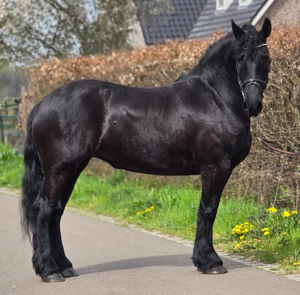 Te koop aangeboden: prachtige barok type Friese merrie 2021) Deze imposante Friese verschijning is een echte eyecatcher met Haar barokke bouw, lange manen en chique uitstraling. Met een stokmaat van ca. 167 cm is ze ideaal van formaat voor zowel recreatief als sportief gebruik. Ze is braaf en betrouwbaar in de omgang en beschikt over een fijn, werkwillig karakter. Onder het zadel laat ze zich netjes rijden en is ze fijn te bewerken, zowel in de bak als buiten. Ook in het verkeer toont ze zich nuchter en zeker. Daarnaast is ze goed braaf voor de koets en toont ze zich daar rustig, stabiel en meewerkend. Hierdoor is ze uitermate geschikt voor zowel mennen als rijden. Kortom: een veelzijdige Friese paard met uitstraling, karakter en kwaliteit, geschikt voor een ambitieuze amateur of een liefhebber van het Friese ras. Voor meer informatie of een proefrit bent u van harte welkom om contact op te nemen.