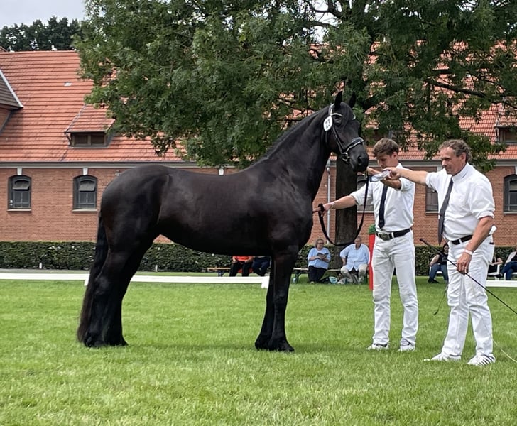 **Verkaufsanzeige: Wunderschöne Friesenstute zu verkaufen** Zum Verkauf steht eine Stb Kroon AA Friesenstute aus dem Stamm 50 für die gehobene Zucht. Lotte v/d Grote Overbrug ist geboren im Jahr 2019. Sie ist ein beeindruckender Rappe mit einem Stockmaß von 165 cm und hatte ein Hengstfohlen das prämiert ins Stammbuch aufgenommen wurde. Diese Stute besticht durch ihren majestätischen Auftritt und ihren liebevollen Charakter. Sie ist sowohl im Umgang als auch unter dem Sattel brav und lernwillig. Geburt und Verhalten ohne Probleme- der Grundstein für ihre Friesenpferdezucht nach dem Kfps. Die Stute ist gut sozialisiert, im Umgang mit anderen Pferden freundlich und hat ein ausgeglichenes Temperament. Sie ist gesund, regelmäßig geimpft und entwurmt. Bei Interesse oder für weitere Informationen stehe ich gerne zur Verfügung. Ein Kennenlernen und Probereiten sind nach Absprache möglich. Wir freuen uns auf Ihre Nachricht!