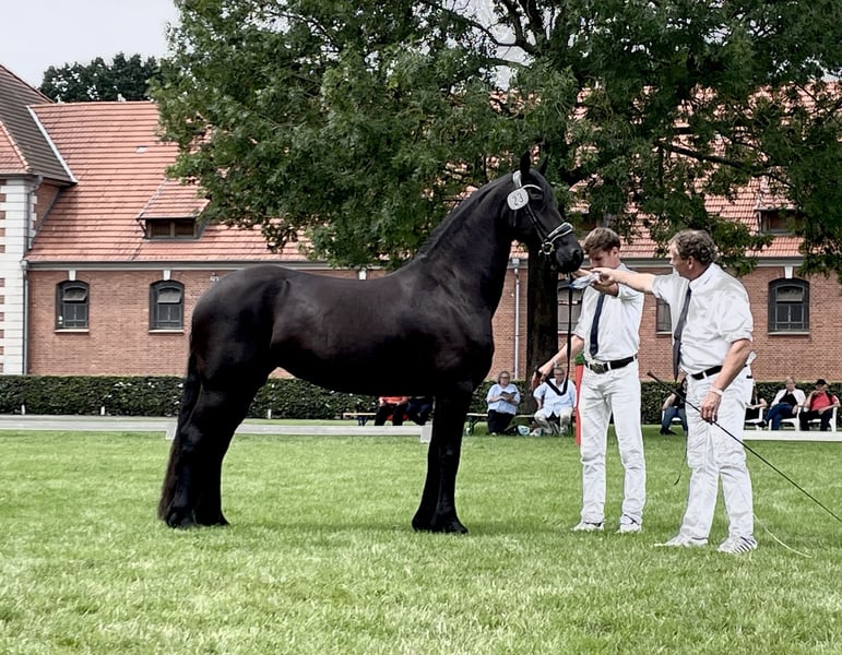 *Rare* For sale is a charming Friesian mare for high-quality breeding. She was born in 2019, belongs to the Stamm 50, and has a consistently premium pedigree. With a height of 165 cm, she is suitable for both experienced riders and ambitious beginners. Lotte had a colt that was awarded and entered into the studbook. Birth and handling are problem-free. She is in foal to Manno 541 Stb for spring 2026. This mare impresses with her friendly disposition and willingness to learn. She is well-mannered, easy to handle, and shows great talent under saddle. Whether in dressage or leisure riding, she is versatile and has the potential to shine in various disciplines. The mare is regularly vaccinated, dewormed, and has a current health check. She is in good training condition and ready to start her journey with her new owner. If you are interested or have further questions, please feel free to contact me. Visit us and see for yourself this wonderful mare!
